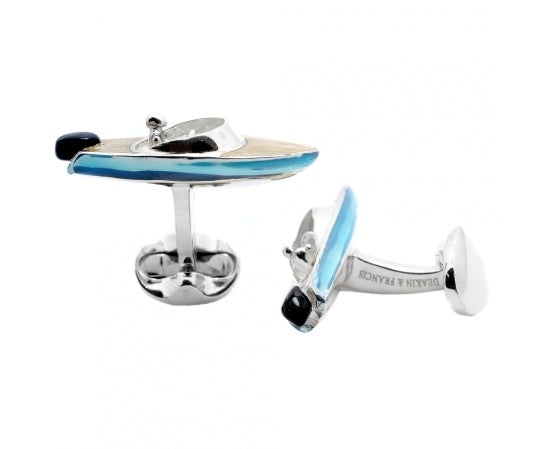 Manschettenknöpfe aus Sterlingsilber mit Schnellbootmotiv von Deakin & Francis