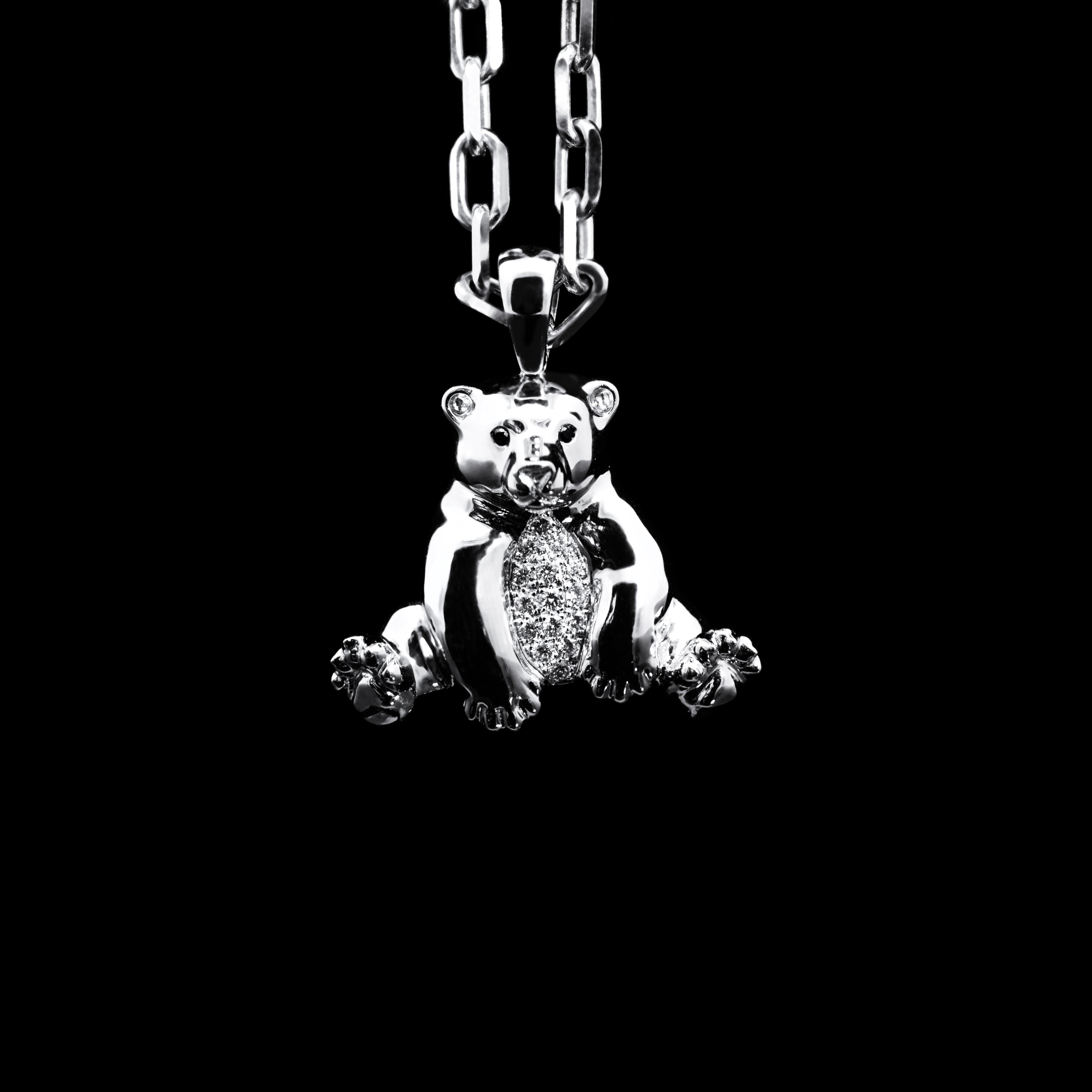 Stenzhorn Bärenanhänger aus Weißgold mit Diamanten