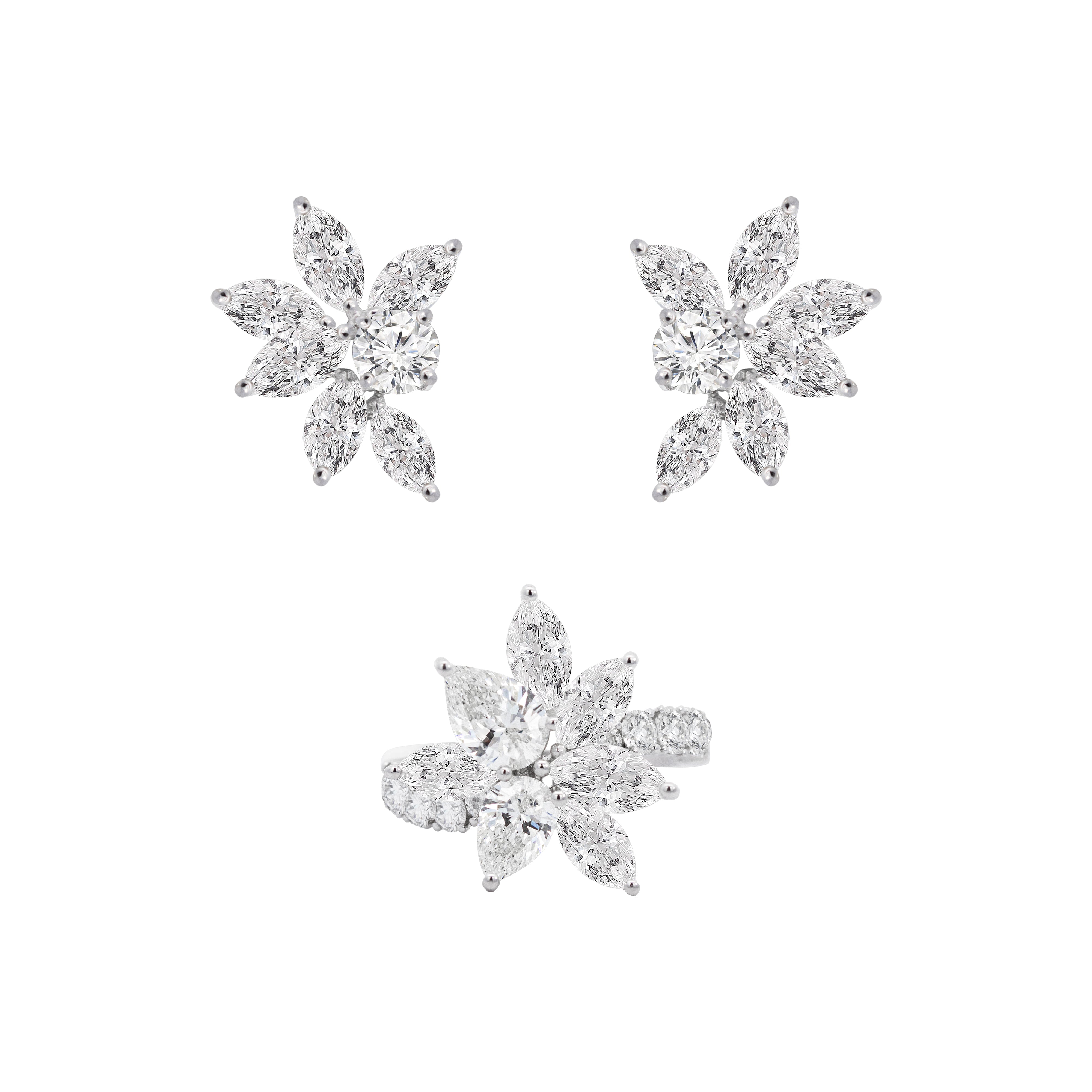 Ohrringe und Ring mit Marquise-Diamanten-Set
