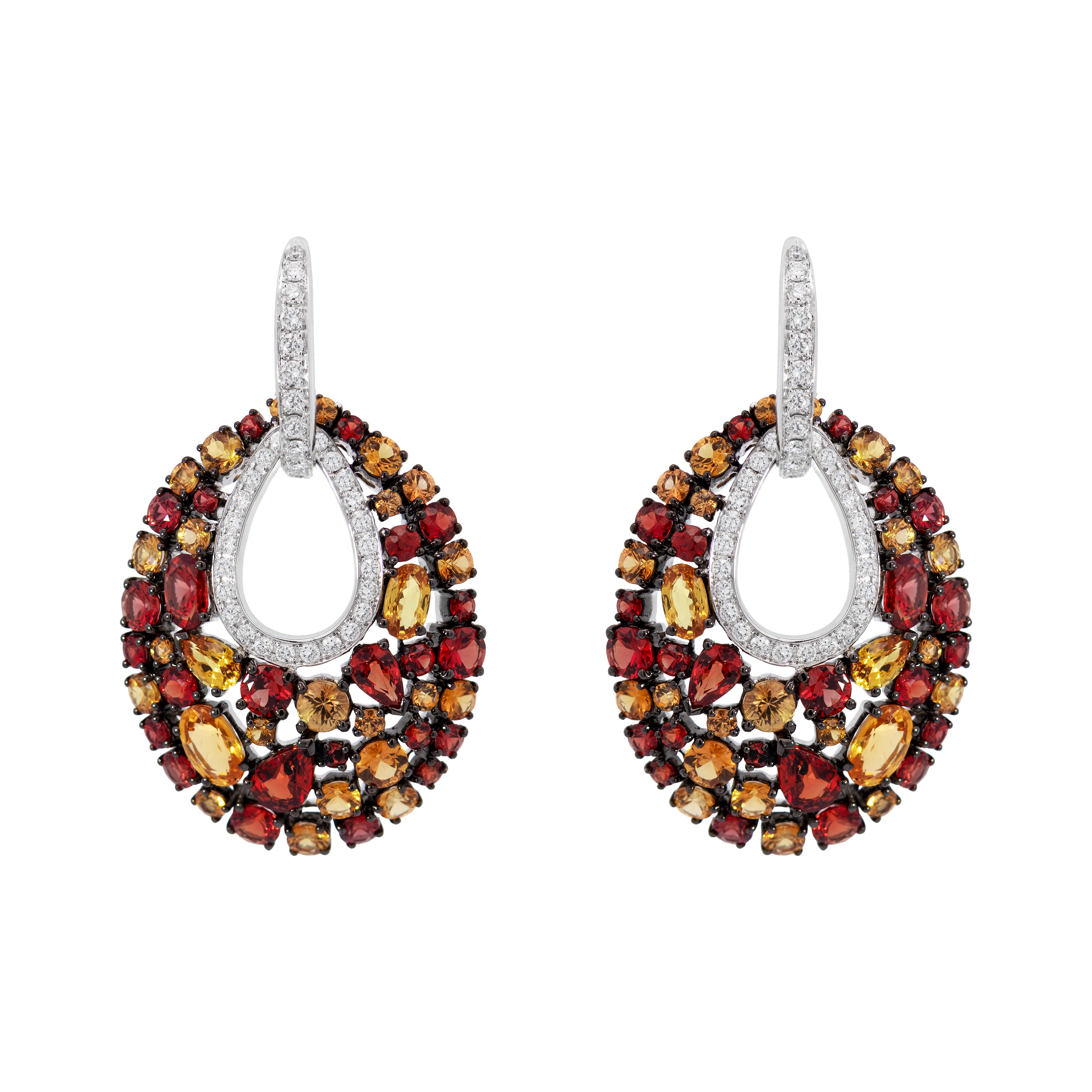 Ohrringe mit Diamanten und roten Saphiren