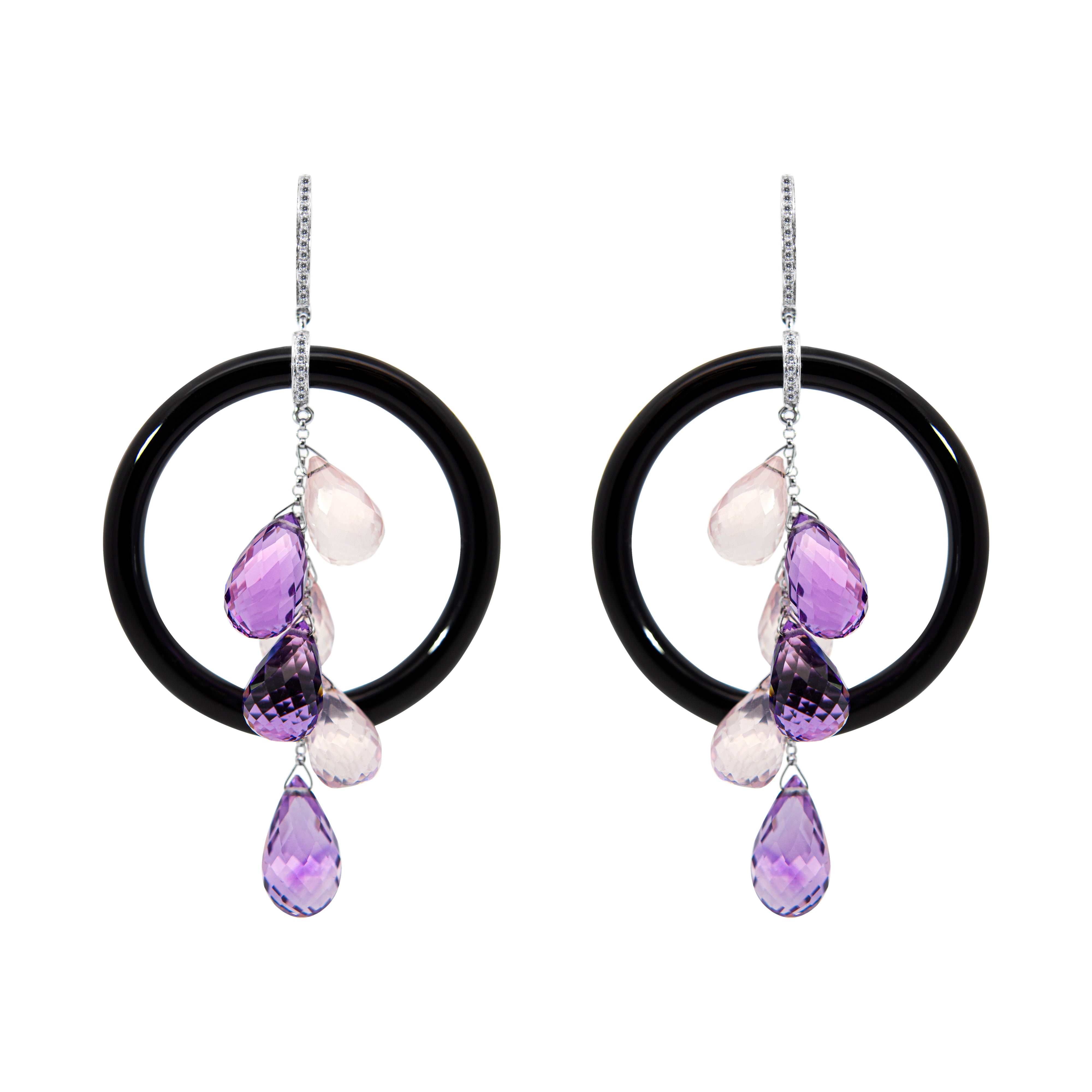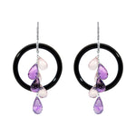 Ohrringe mit Onyx, Amethyst, Quarz und Diamanten