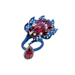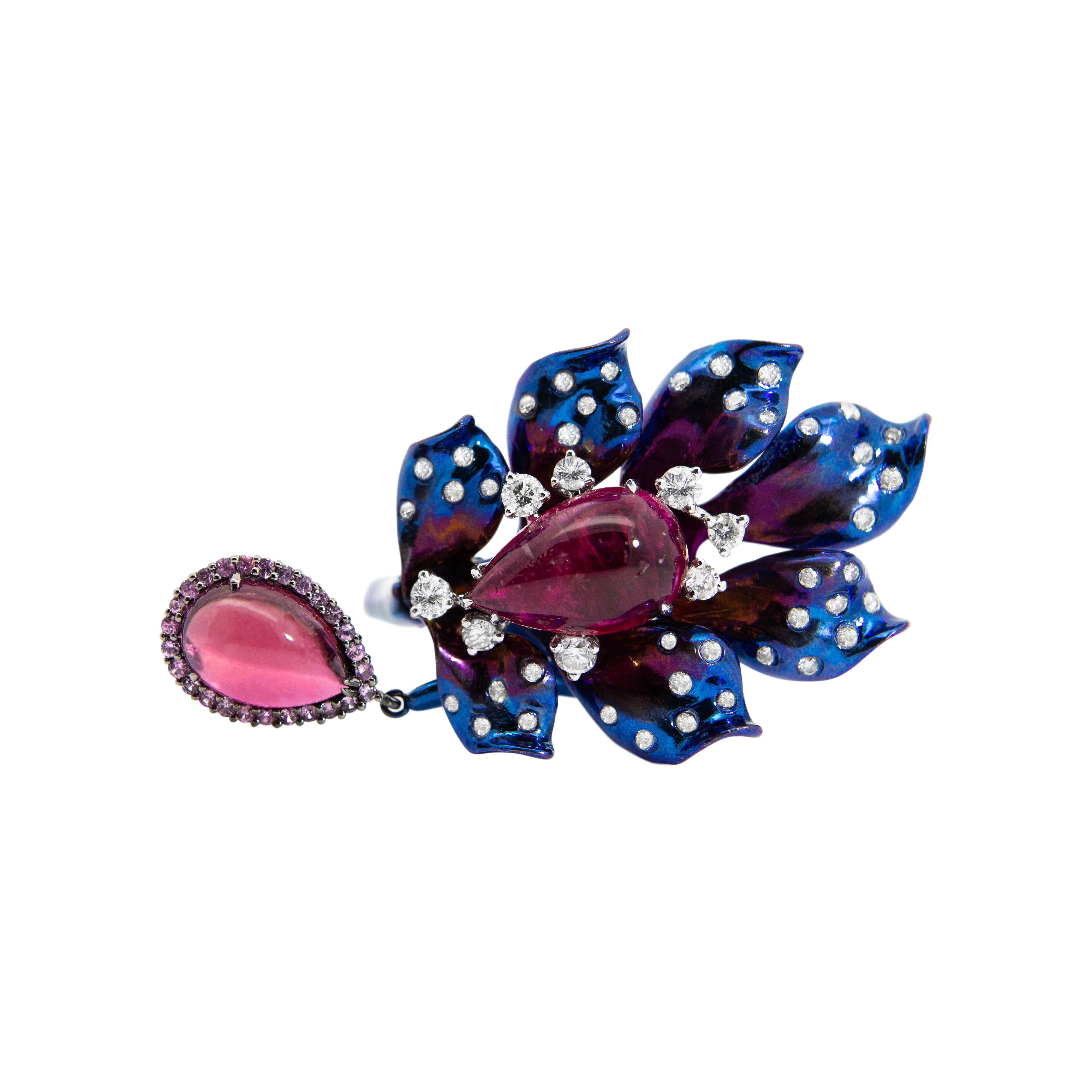 Blumenring aus Titan mit Rubellit und Diamanten