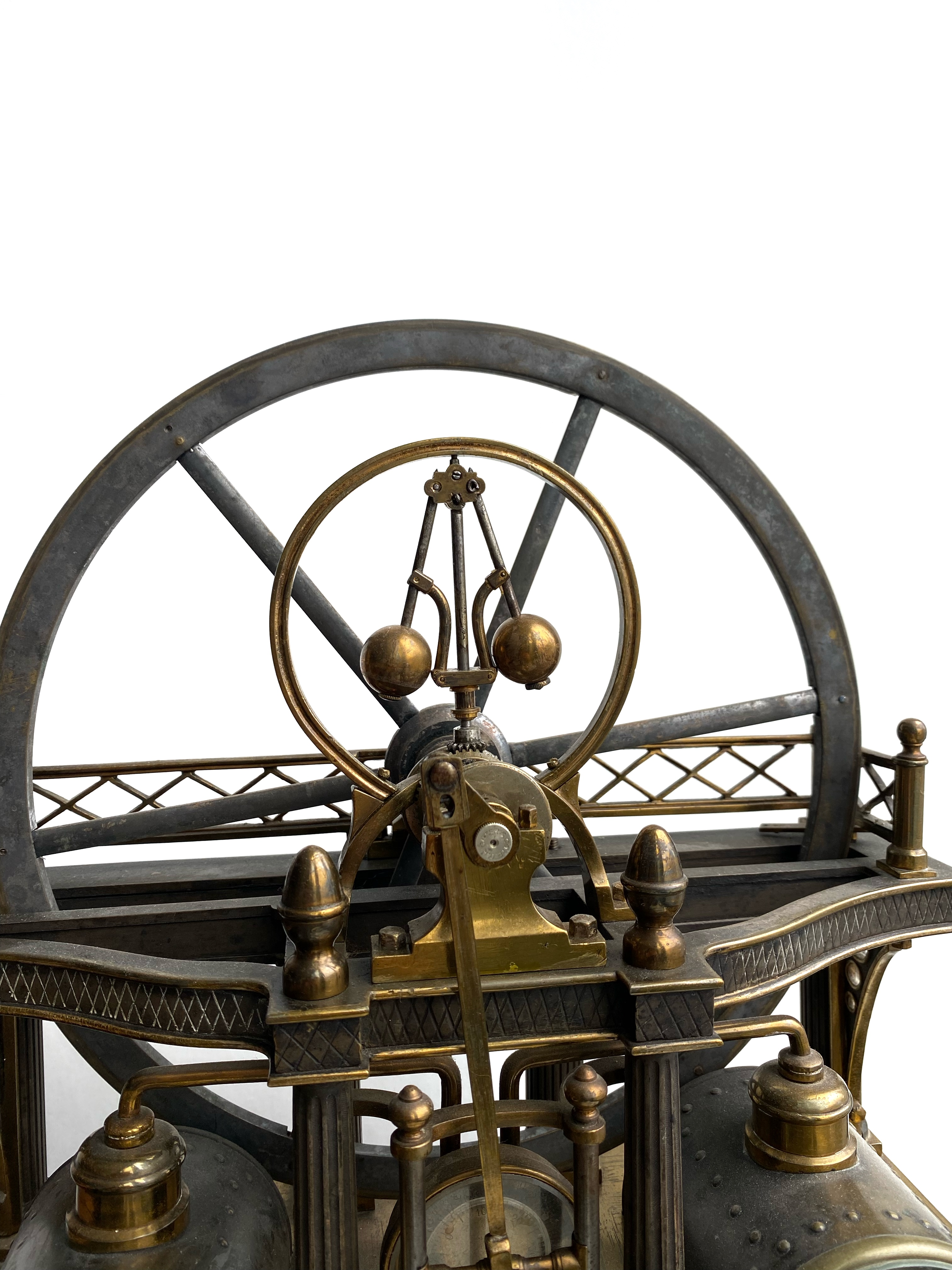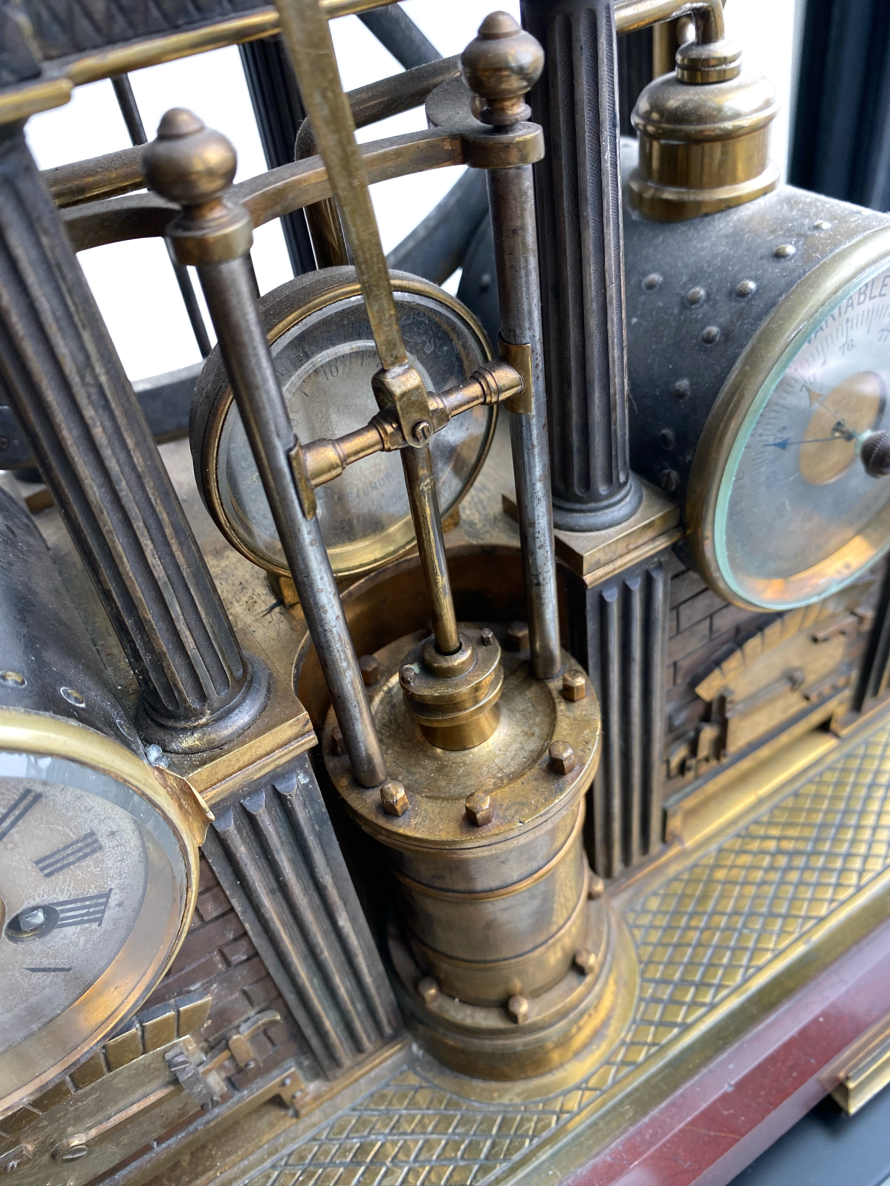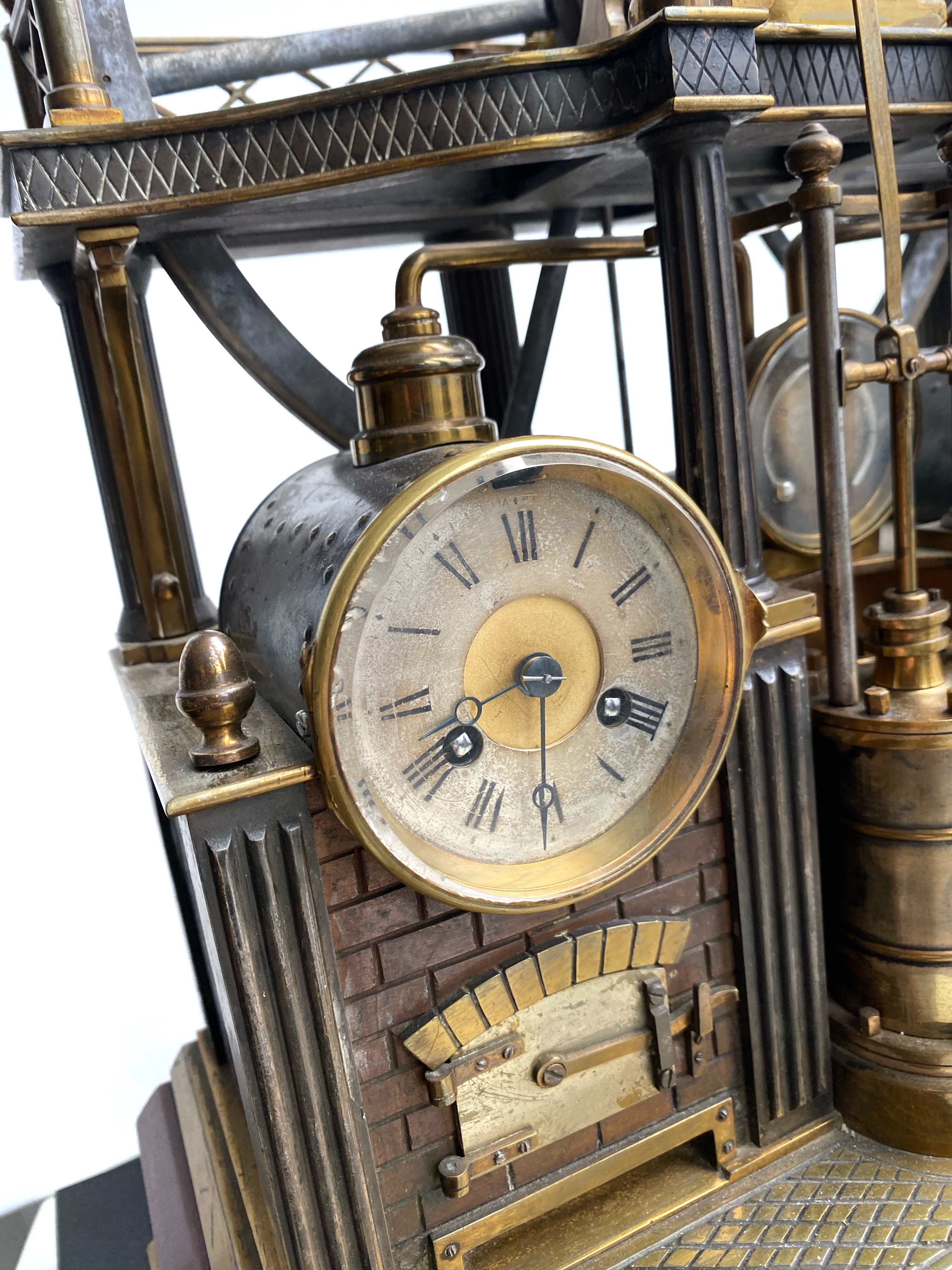 Neben seinen klassischen Designelementen ist diese Uhr eine fantastische Darstellung einer Dampflok aus dem späten 19. Jahrhundert, die von zwei Kesselöfen betrieben wird.