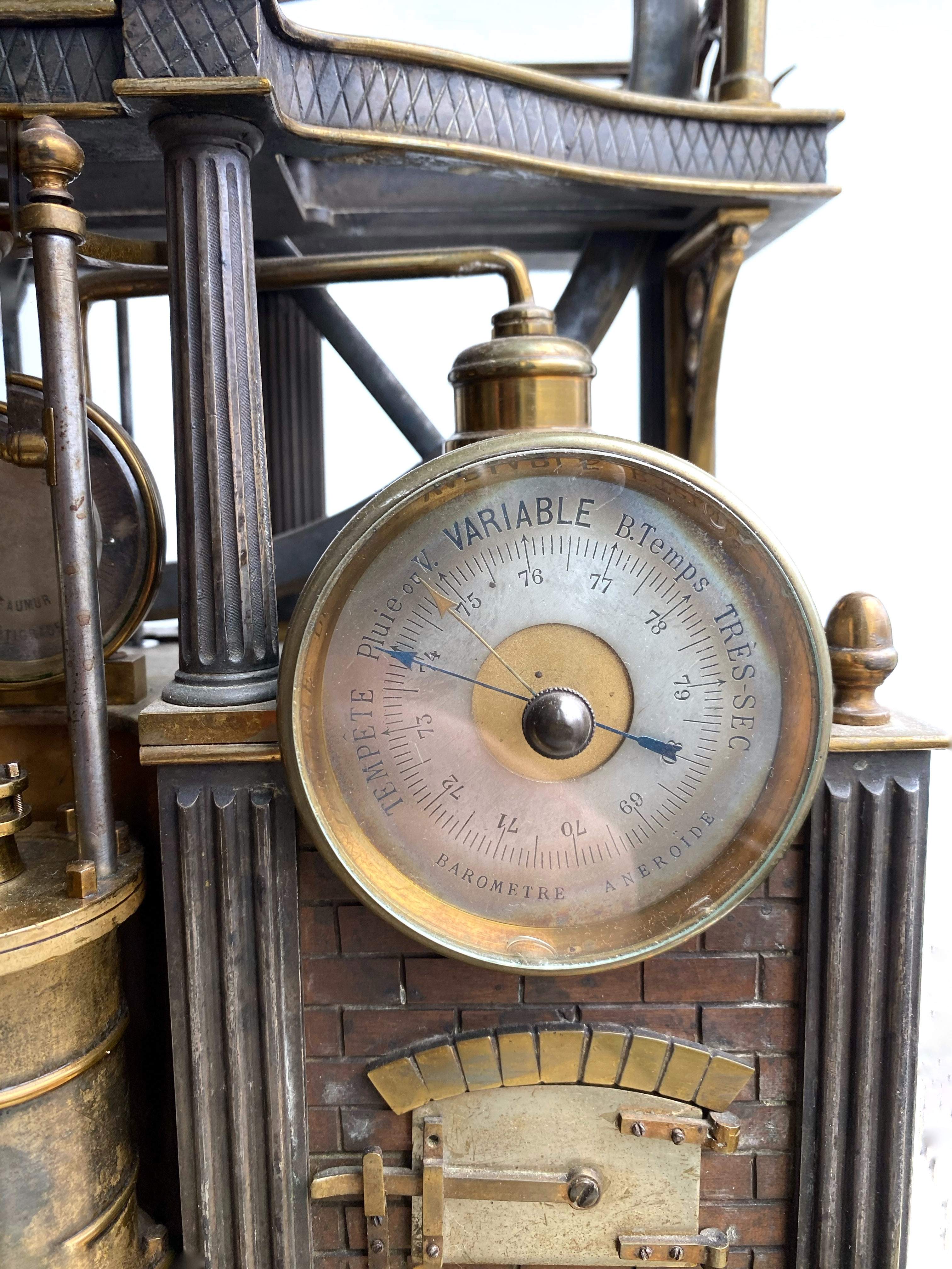 Für Sammler oder Enthusiasten ist diese französische Cherub-Uhr mit Doppelboiler-Uhr und Barometer ein bemerkenswerter und faszinierender Fund, der die Eleganz und Innovation seiner Zeit verkörpert.
