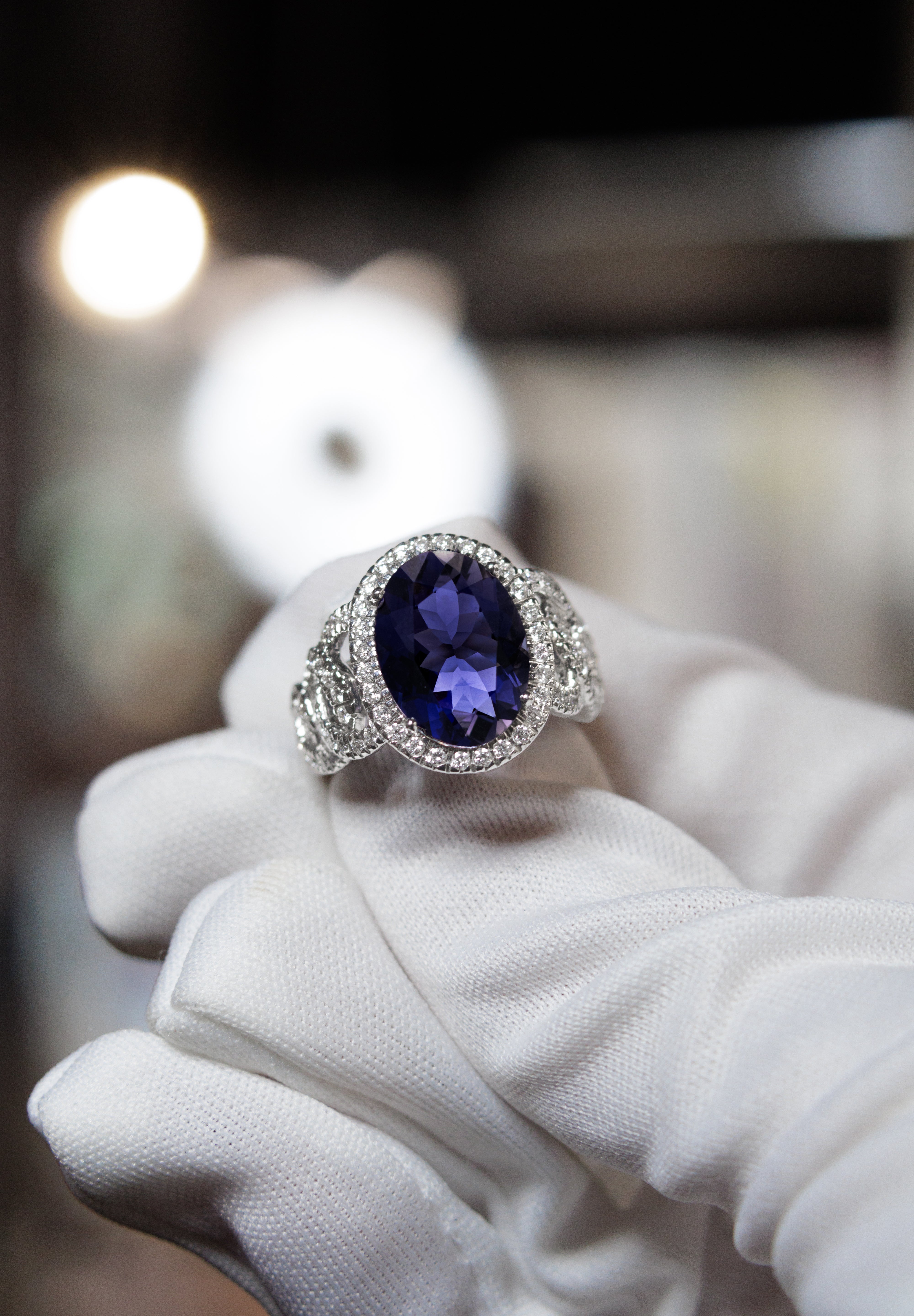 Iolithring mit Diamanten