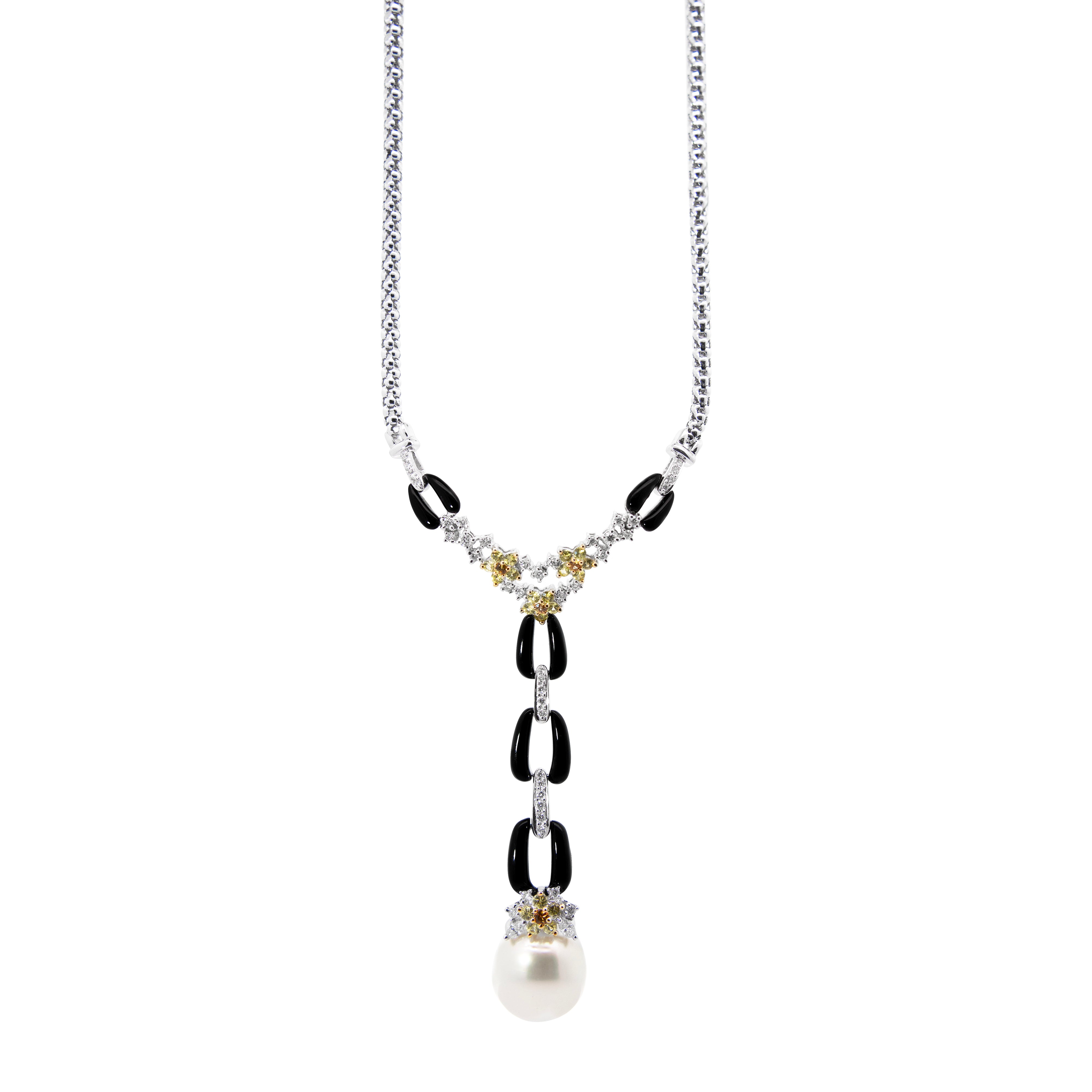 Halskette mit Diamanten, Saphiren, Onyx und natürlichen Perlen