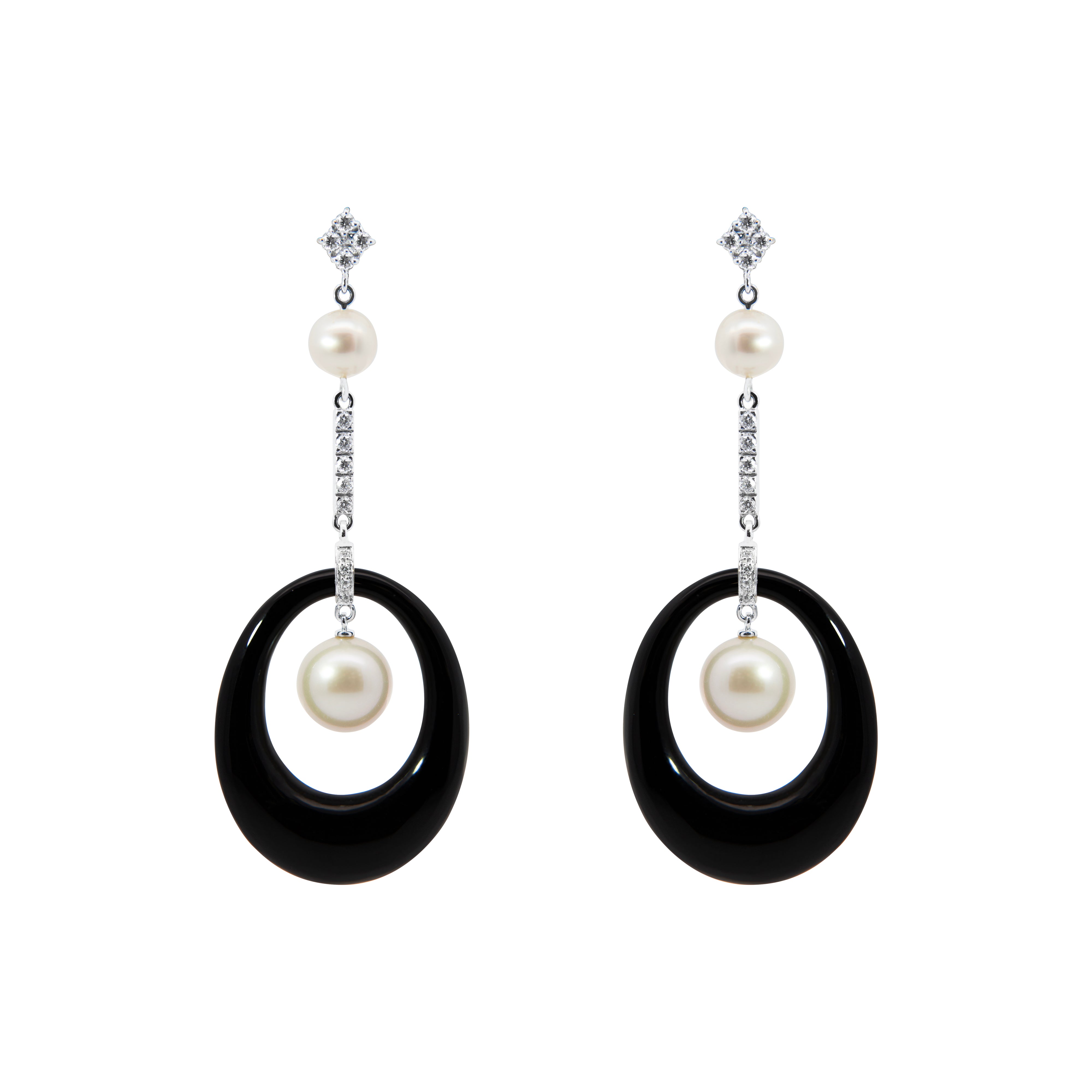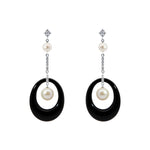 Onyx-Ohrringe mit Diamanten und Perlen