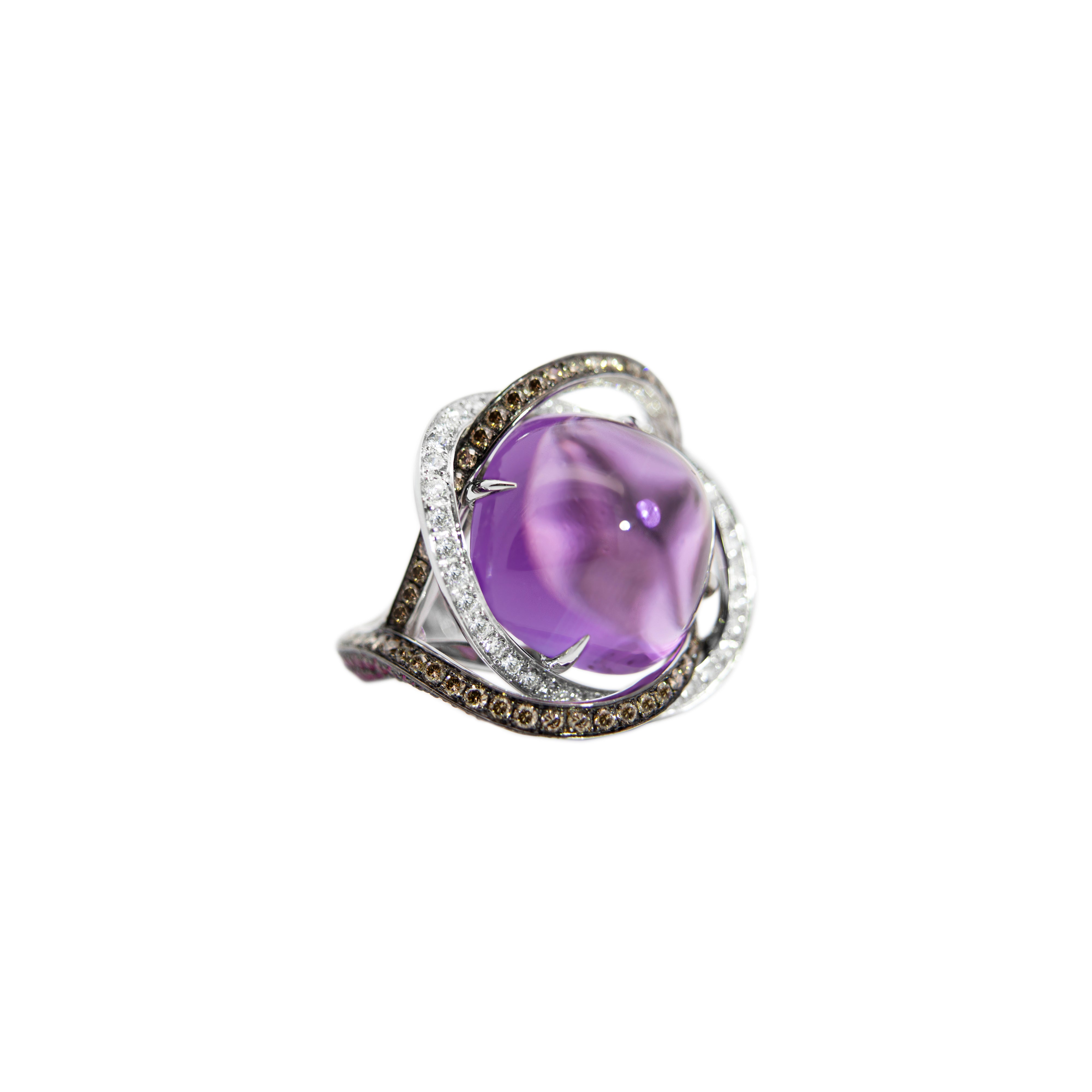Ring mit großen Amethyst-Diamanten und Saphiren
