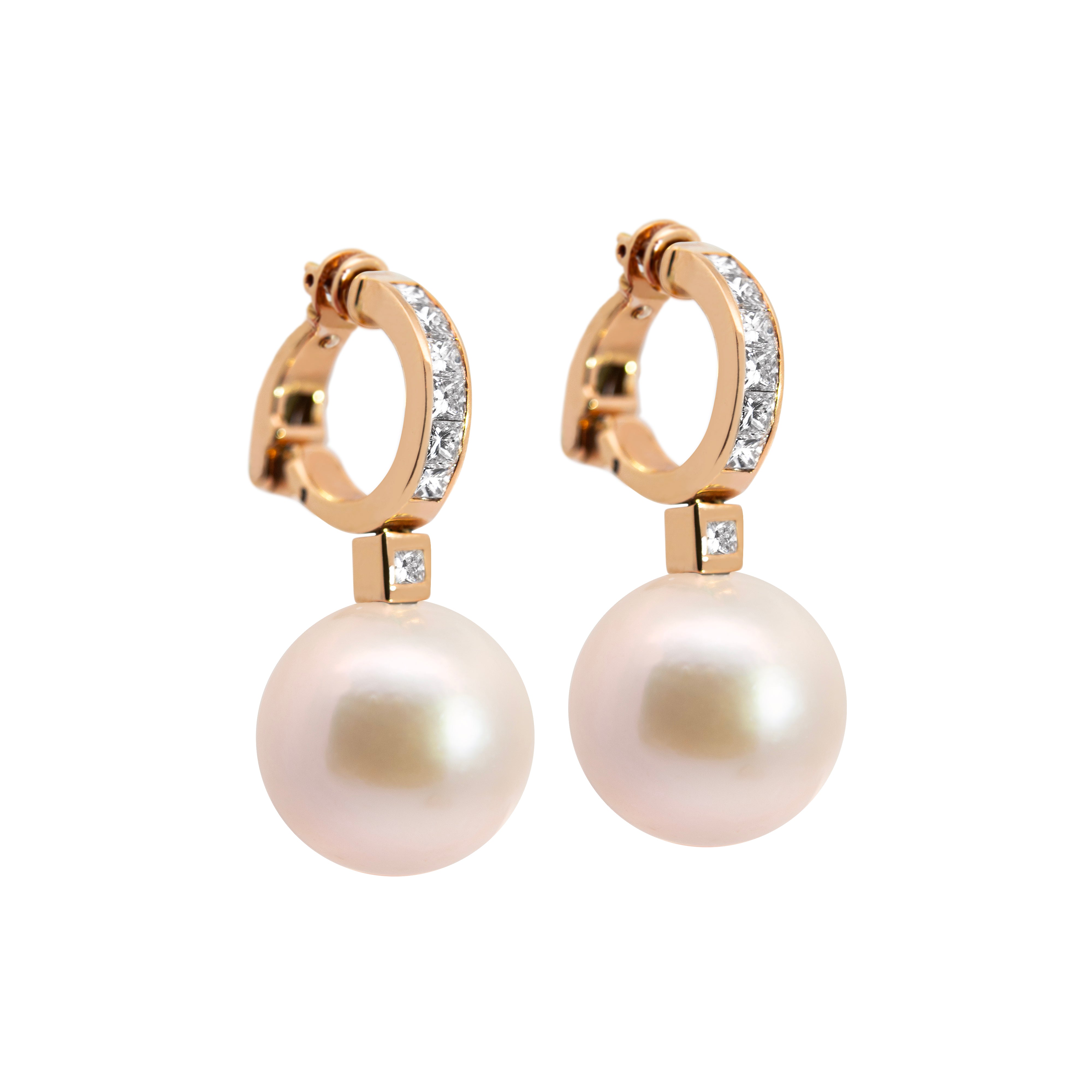 Ohrringe aus Roségold mit Perlen und Diamanten
