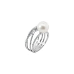 Weißgoldring mit einer natürlichen Perle und Diamanten
