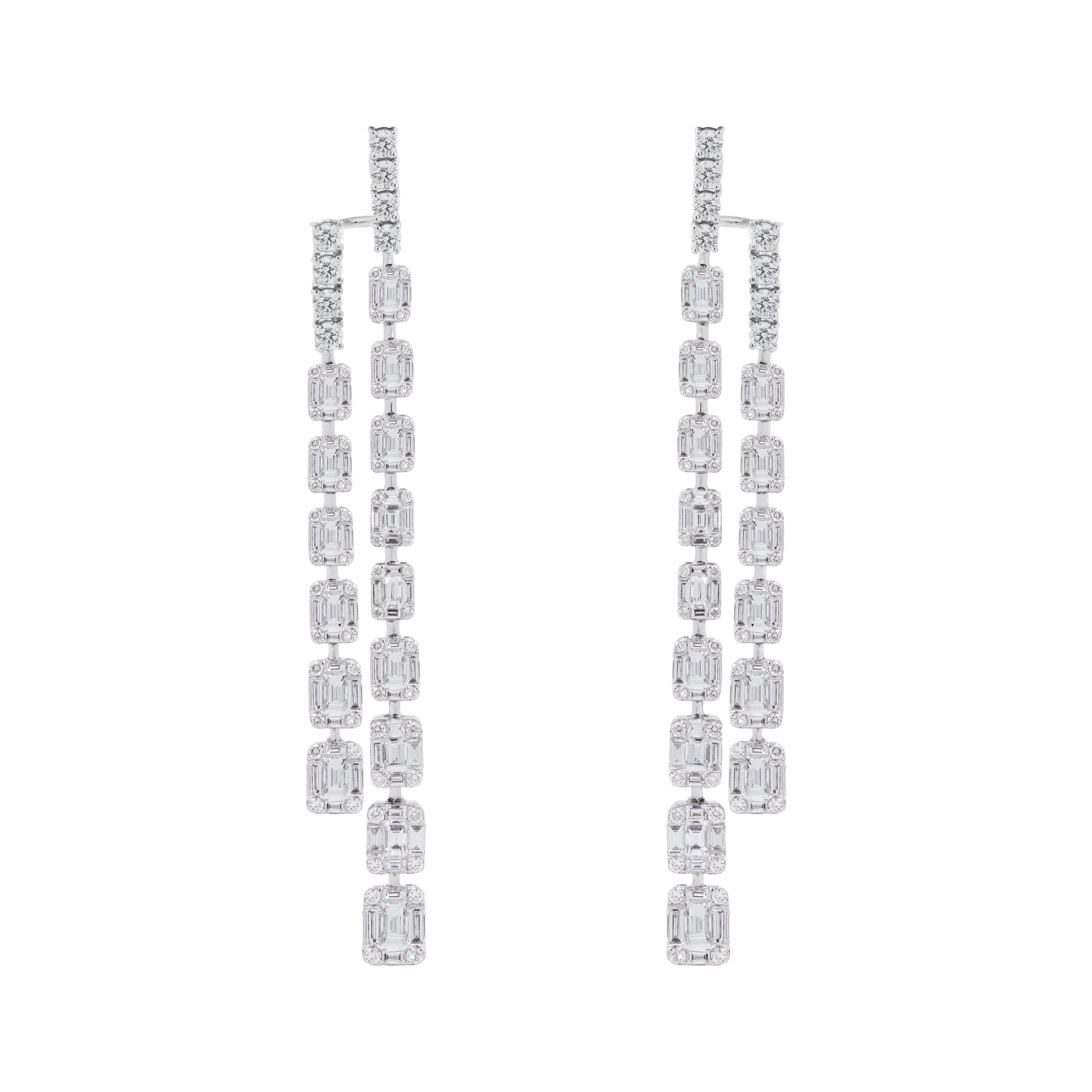 Doppelte Wasserfall Baguette-Diamantohrringe
