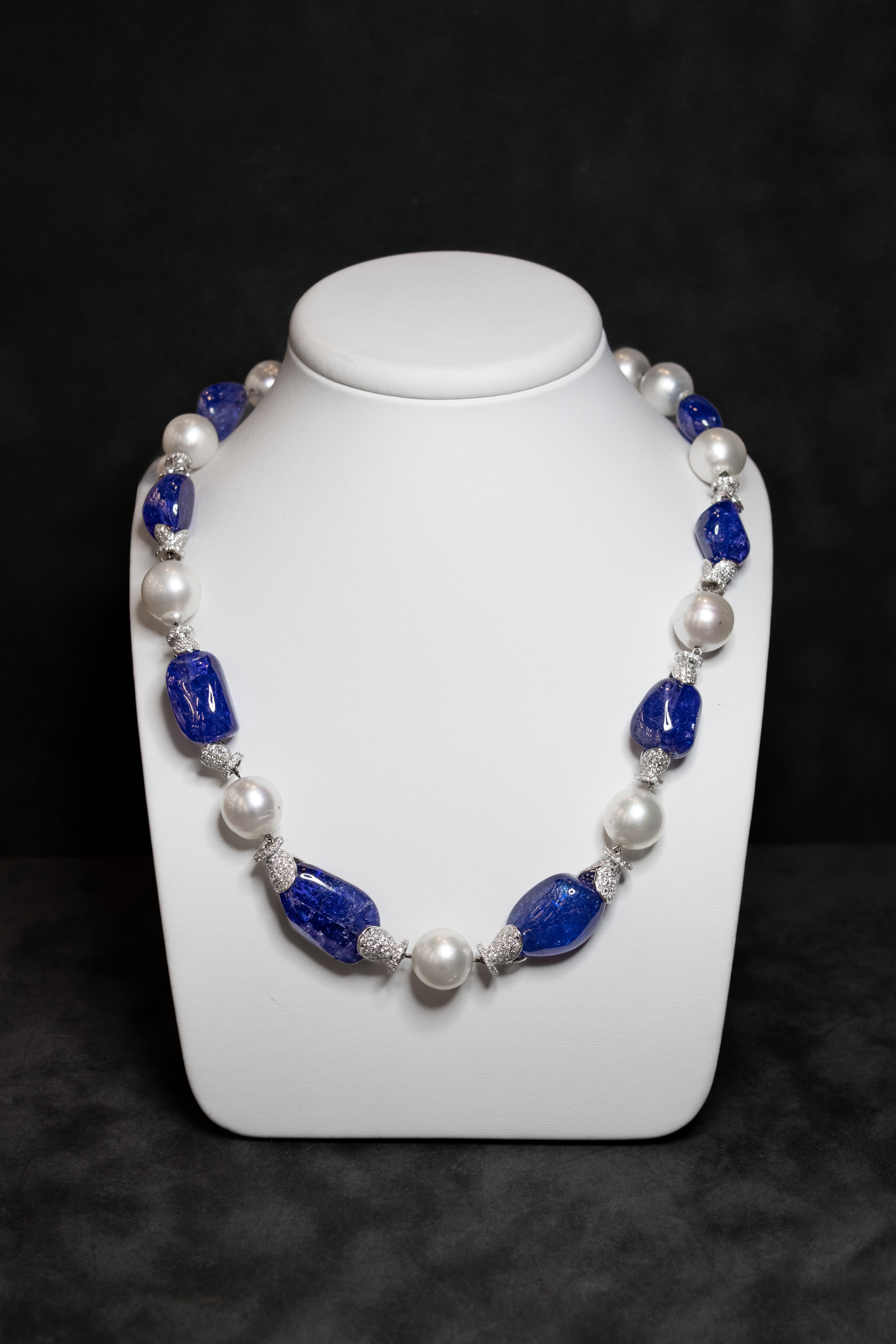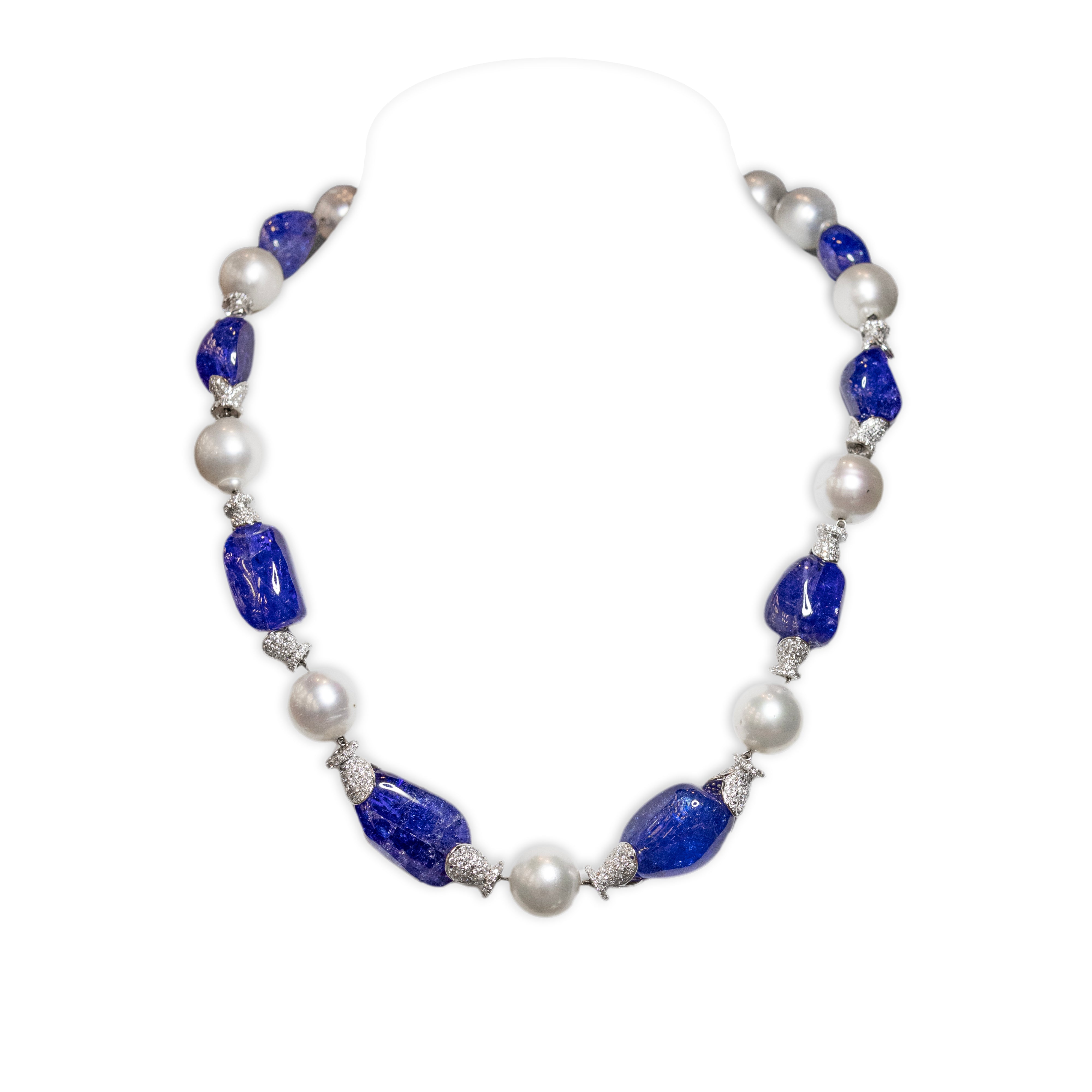 Bläulich-violette natürliche Tansanit 307,84 ct. in fancy Perlenform (Herkunft: Tansania), natürliche Südseeperlen,