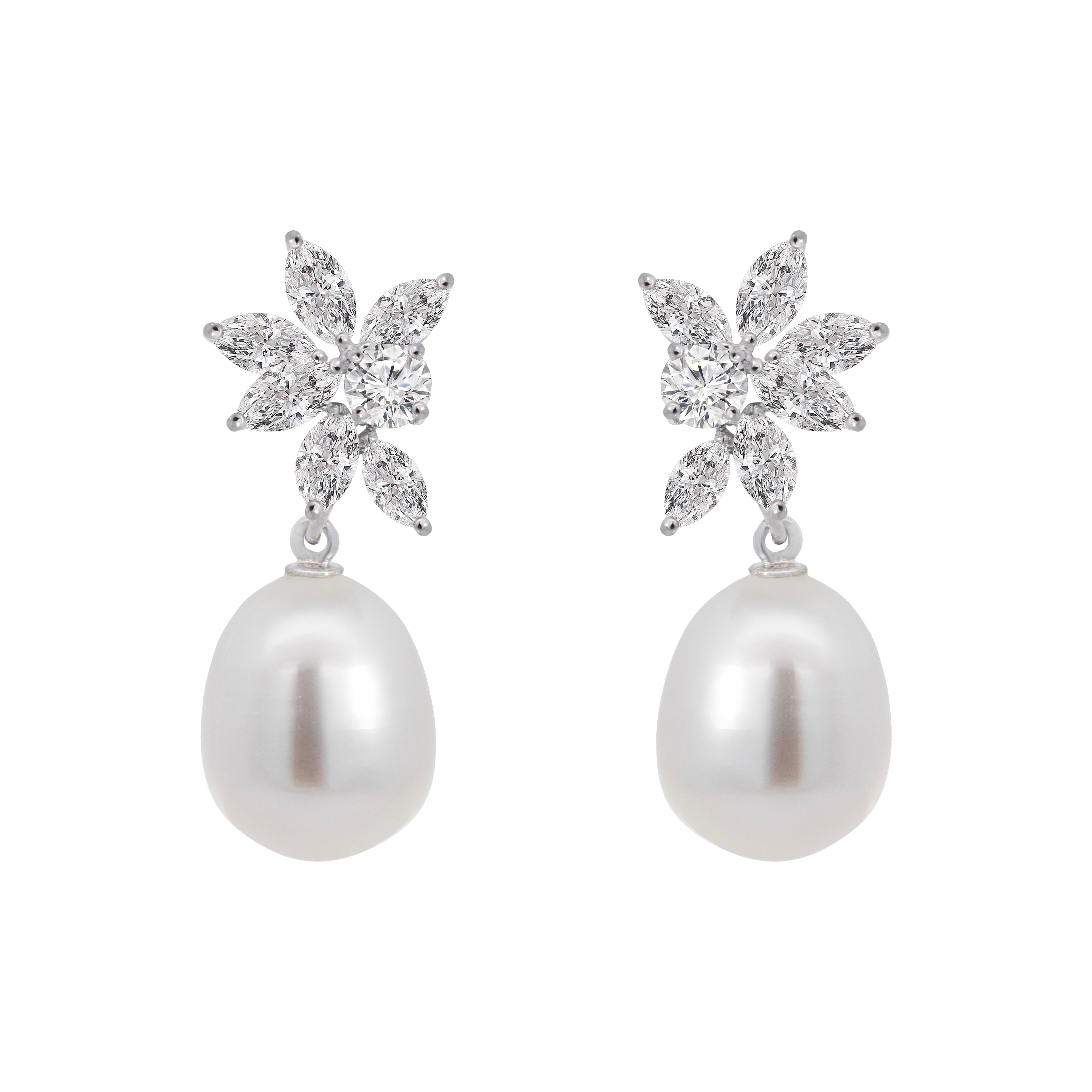 Diamant-Platin-Ohrringe mit abnehmbaren Perlen