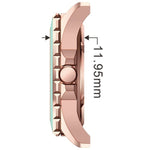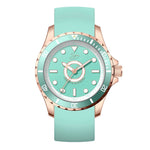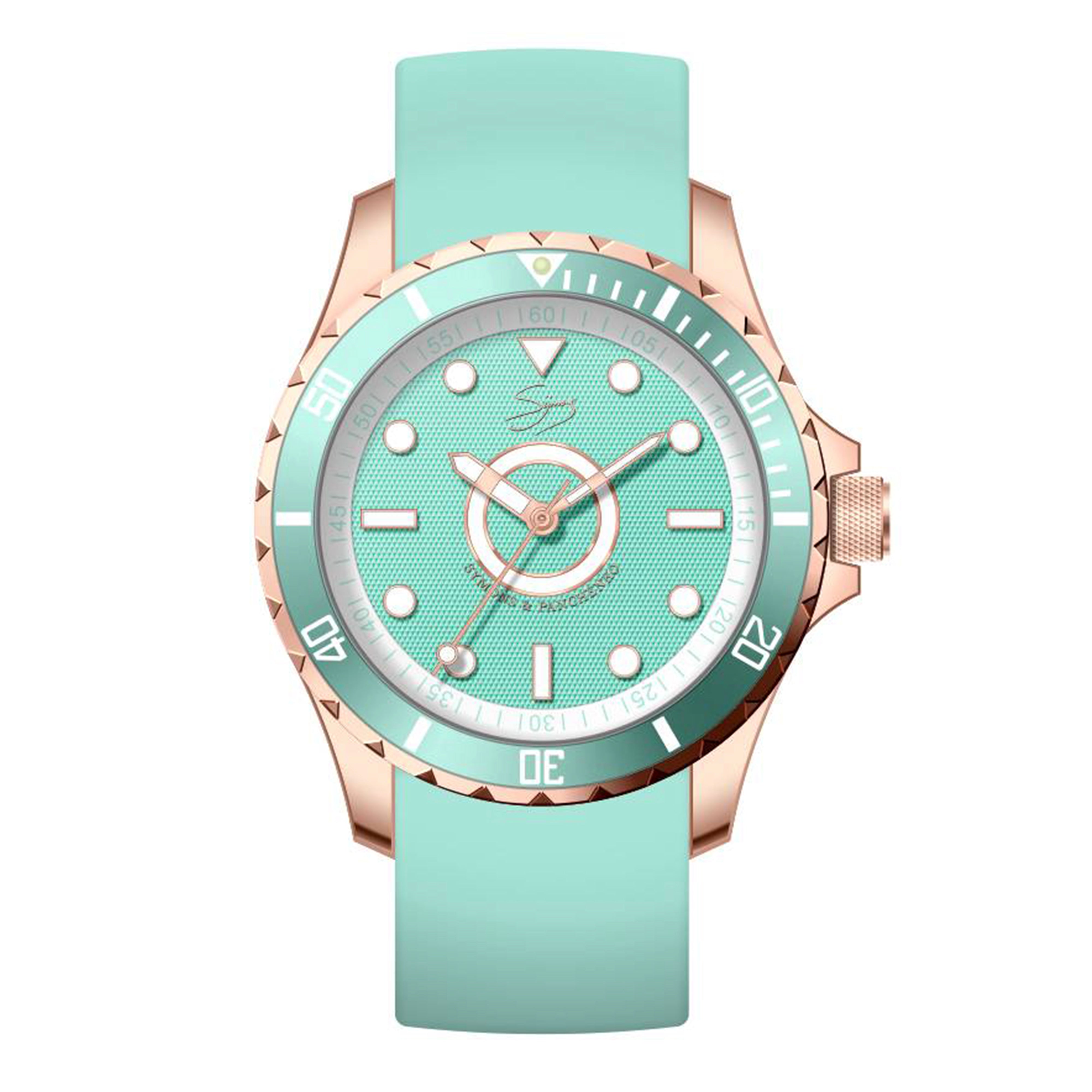 Dutch Master 3-Hand Solid Double Plated Rose Gold Aerodynamisches Gehäuse mit nicht reflektierendem, mit Saphir beschichtetem Glas und einem Silikon-Schnellwechselarmband. Diese Uhr verfügt über eine robuste Schraubkrone, um eine Wasserdichtigkeit von 10 ATM (entspricht 100 m unter dem Meeresspiegel) zu gewährleisten.