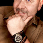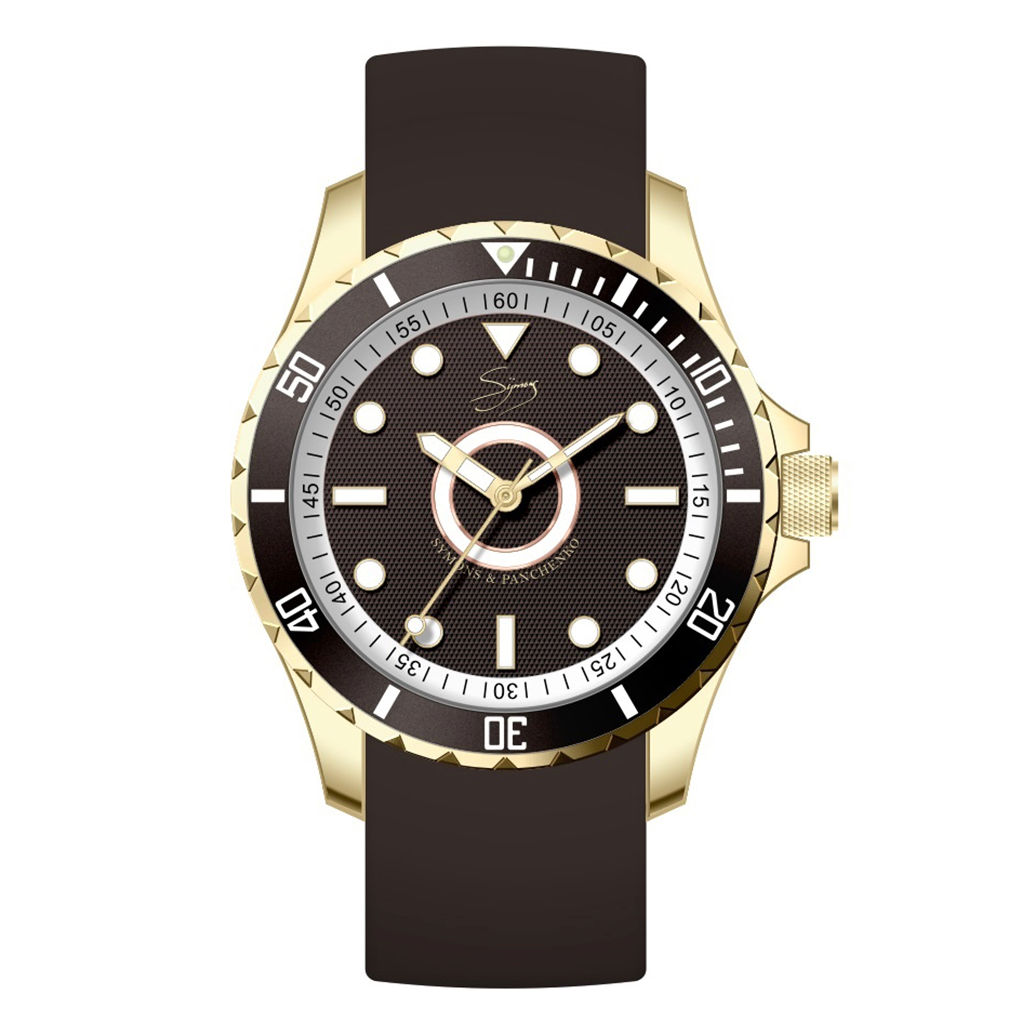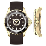 Dutch Master 3-Hand Solid Double Plated Gelbgold aerodynamisches Gehäuse mit nicht reflektierendem, mit Saphir beschichtetem Glas und einem Silikon-Schnellverschlussarmband. Diese Uhr verfügt über eine robuste Schraubkrone, um eine Wasserdichtigkeit von 10 ATM (entspricht 100 m unter dem Meeresspiegel) zu gewährleisten.