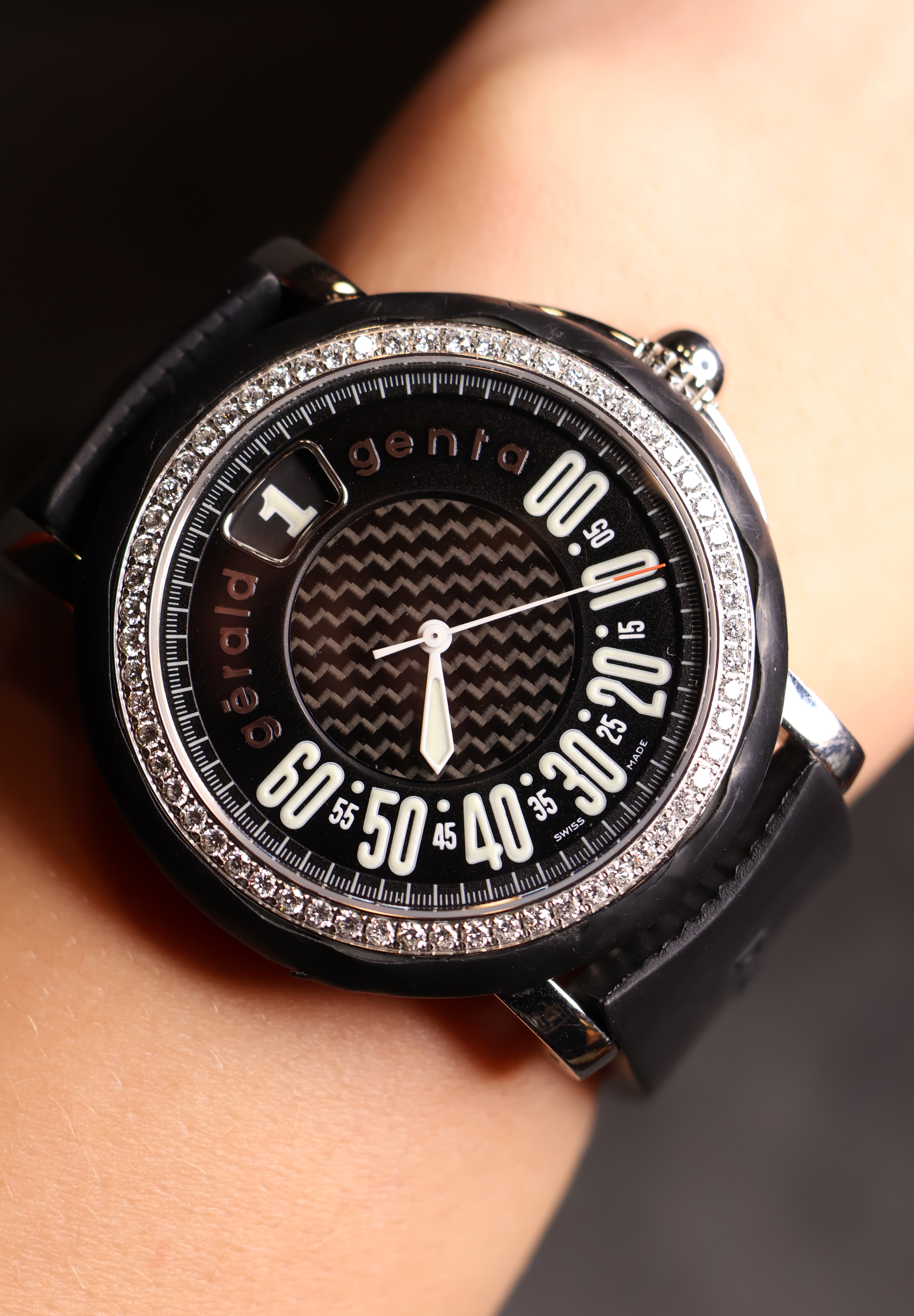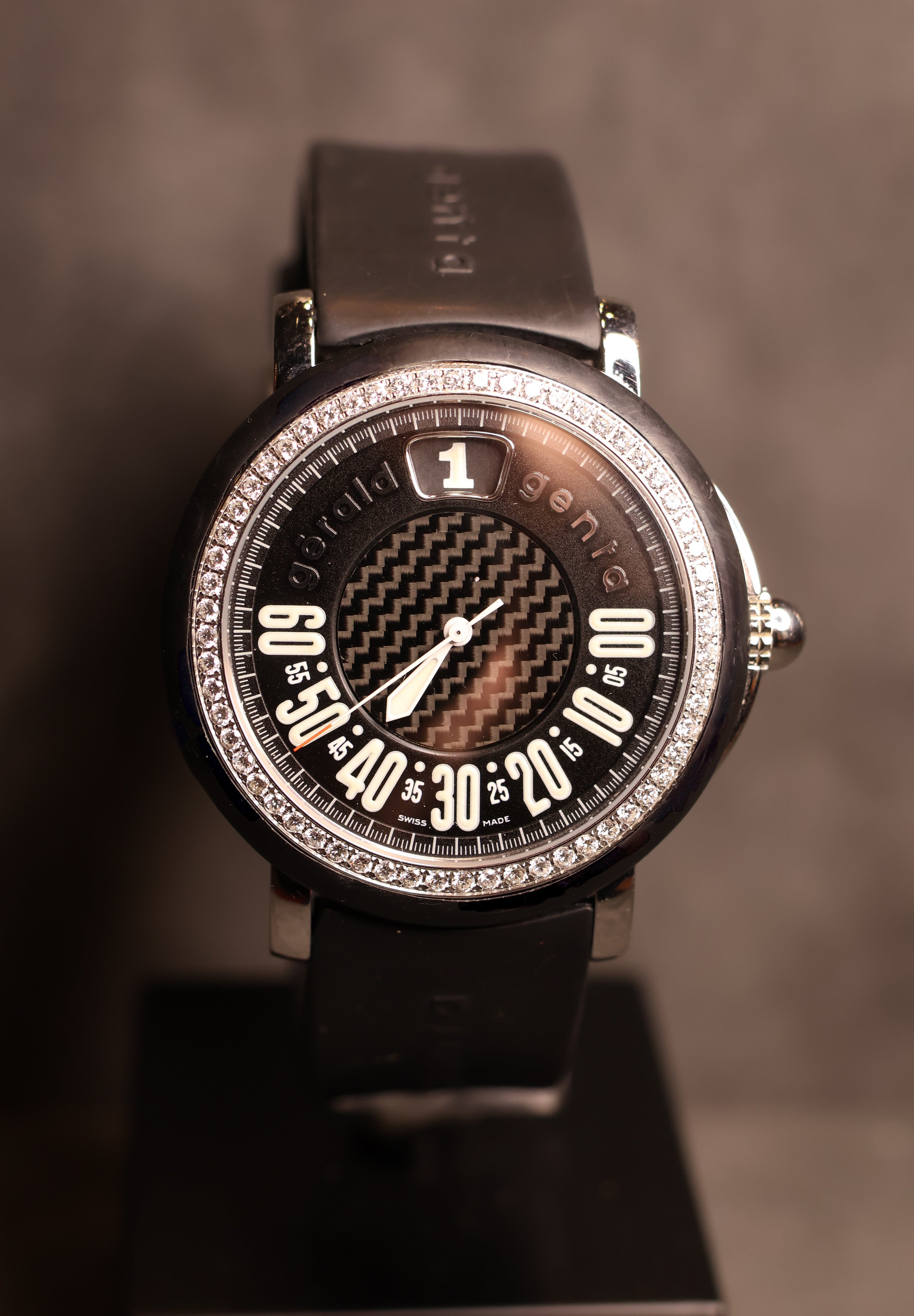Gehäusematerial: Edelstahl mit Gummi und diamantbesetzter Lünette