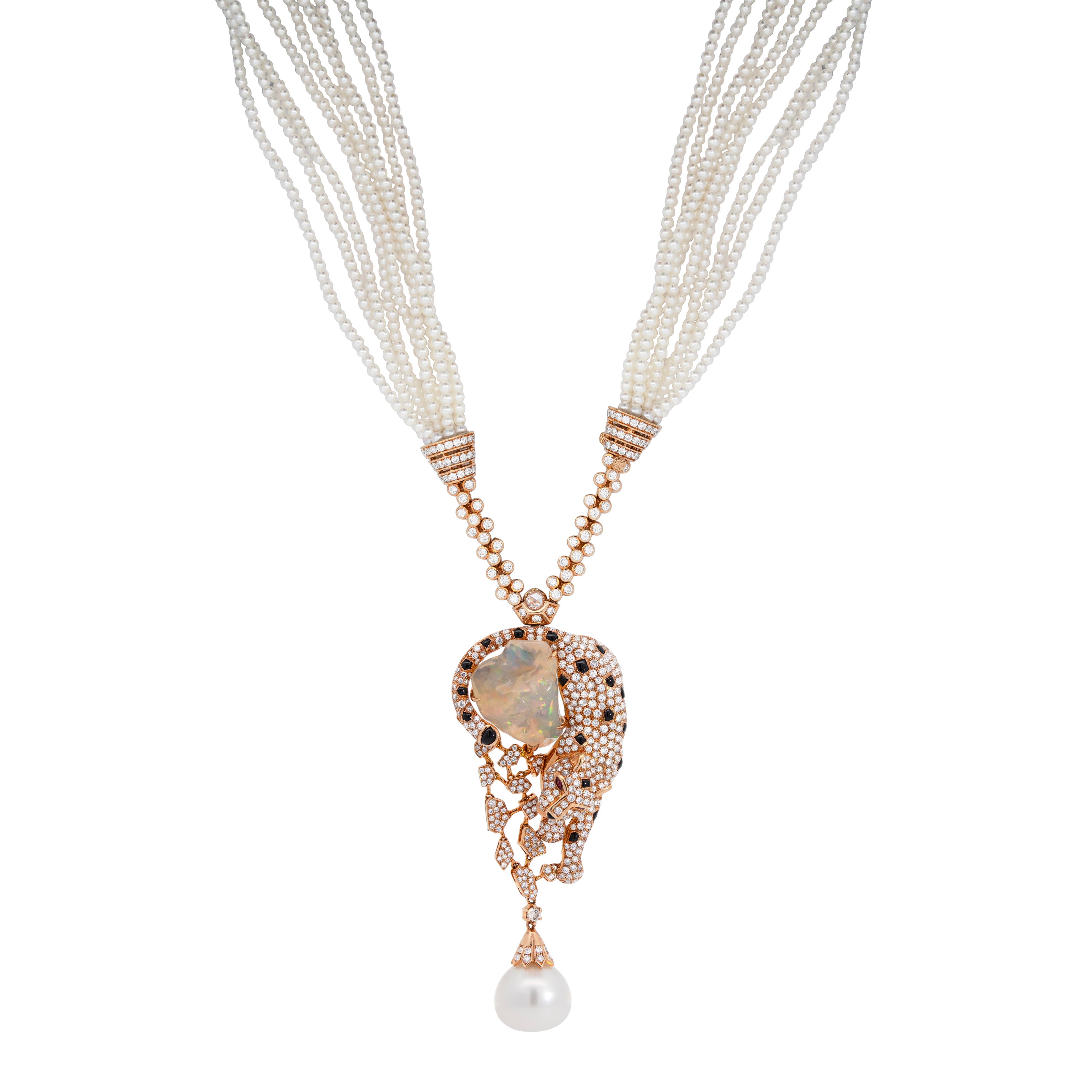 Panthere Rose Gold Collier mit Diamanten und Perlen