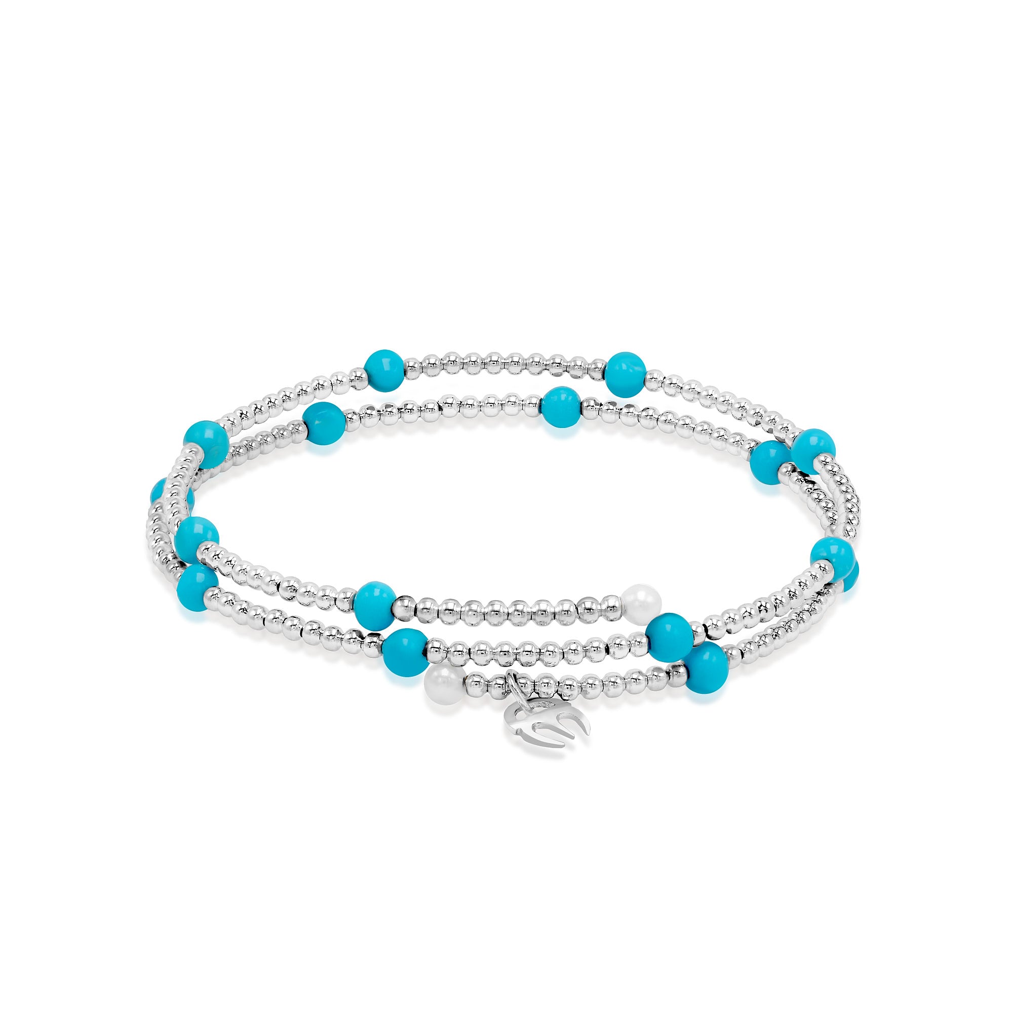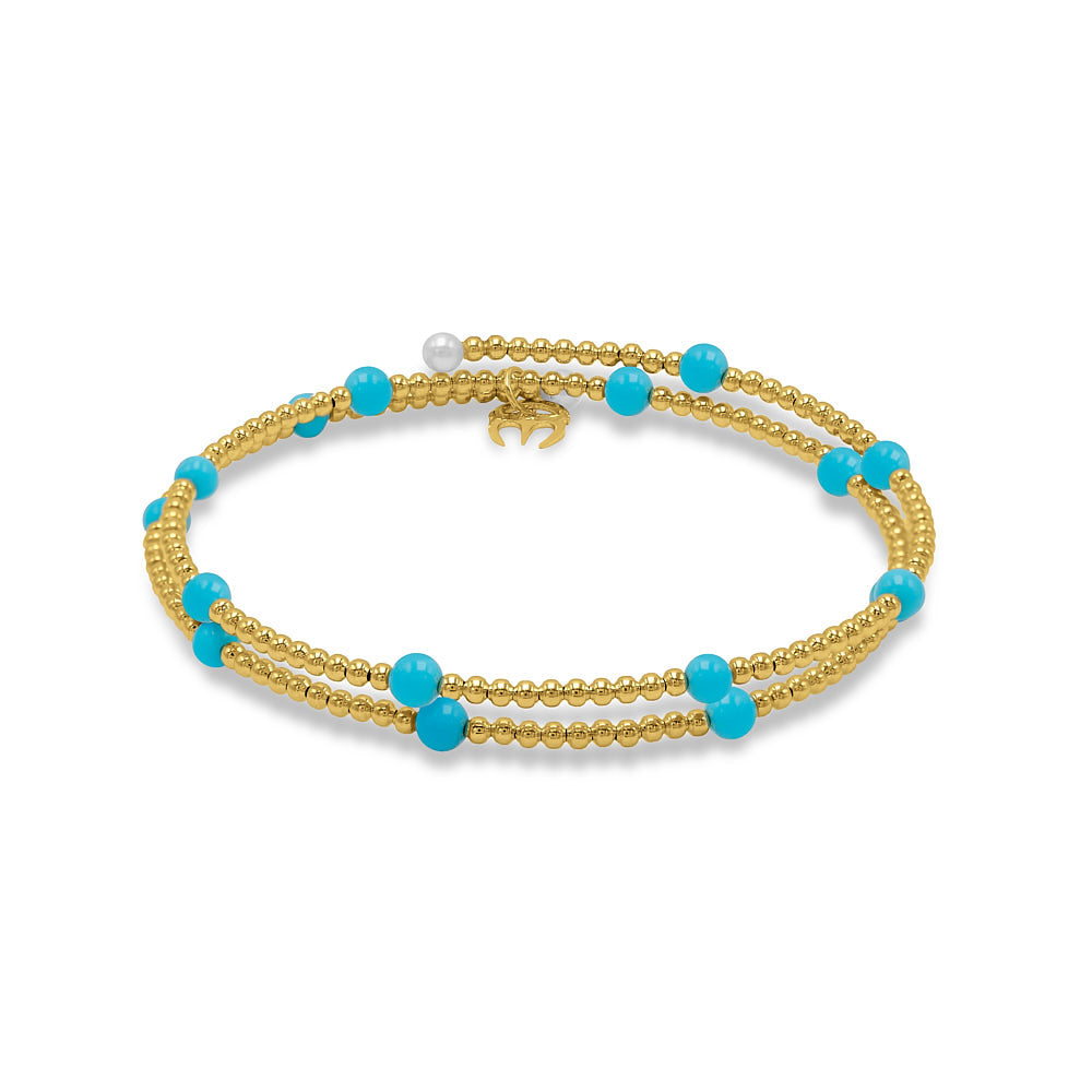 Handgefertigt aus 18 Karat Gelbgold und akzentuiert mit 16 Türkisen und 2 Perlen von 3-4 mm.