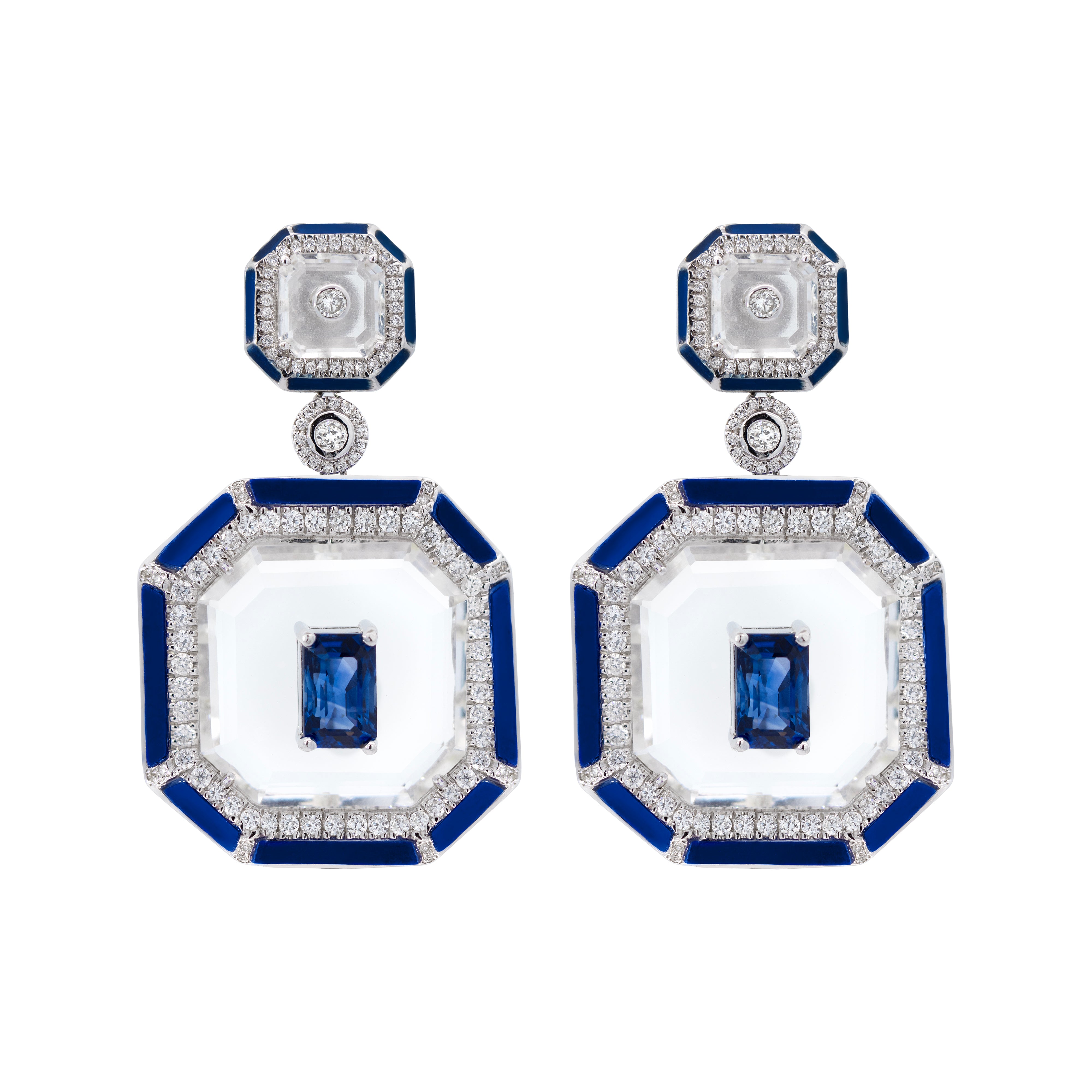 Art Deco Sapphire Rock Crystal Earrings