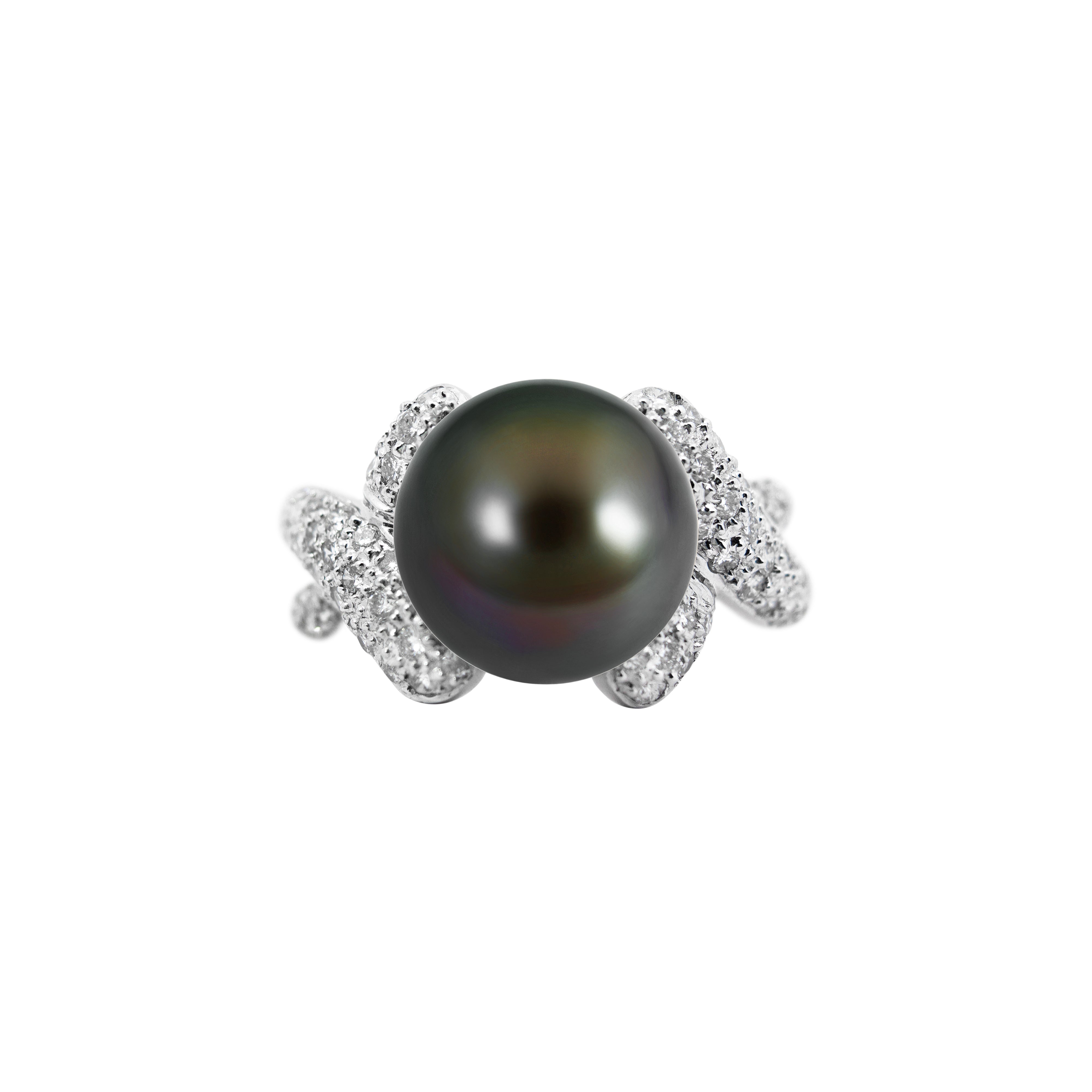 Black Tahitian Pearl Ring with Diamonds