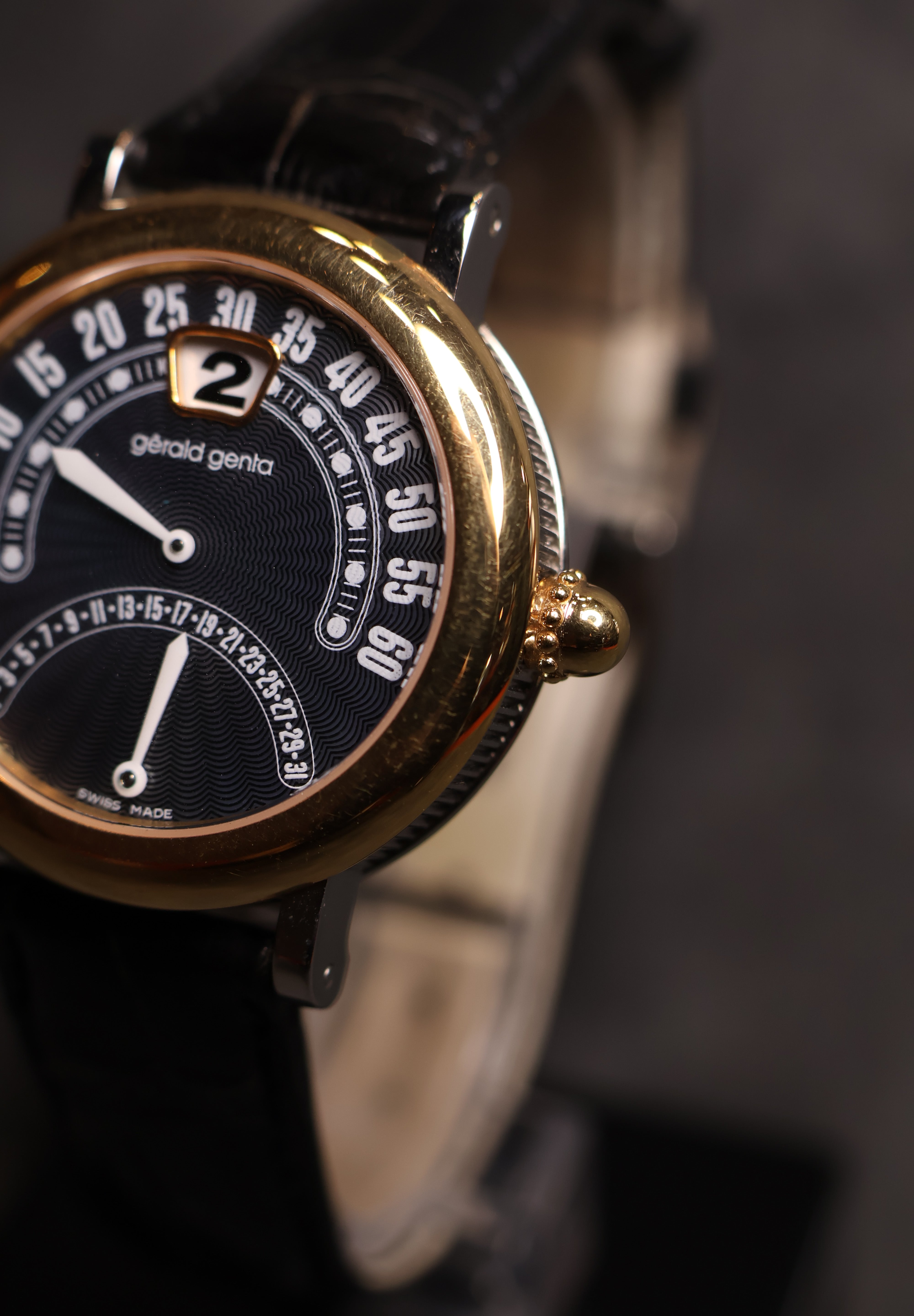 This watch is a blend of technical mastery and elegant design. Its retrograde features and jumping hour complication embody Gerald Genta’s reputation as a pioneer of complex, avant-garde watchmaking. With its luxurious materials and unique functions, it’s a true collector’s piece that stands out as a work of horological art.