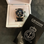 The Graham Swordfish Grillo GMT is a bold and versatile timepiece, designed for modern men seeking a sophisticated and functional accessory. This pre-owned model, in mint condition, combines precision craftsmanship with practical features, making it a standout piece for collectors and enthusiasts.