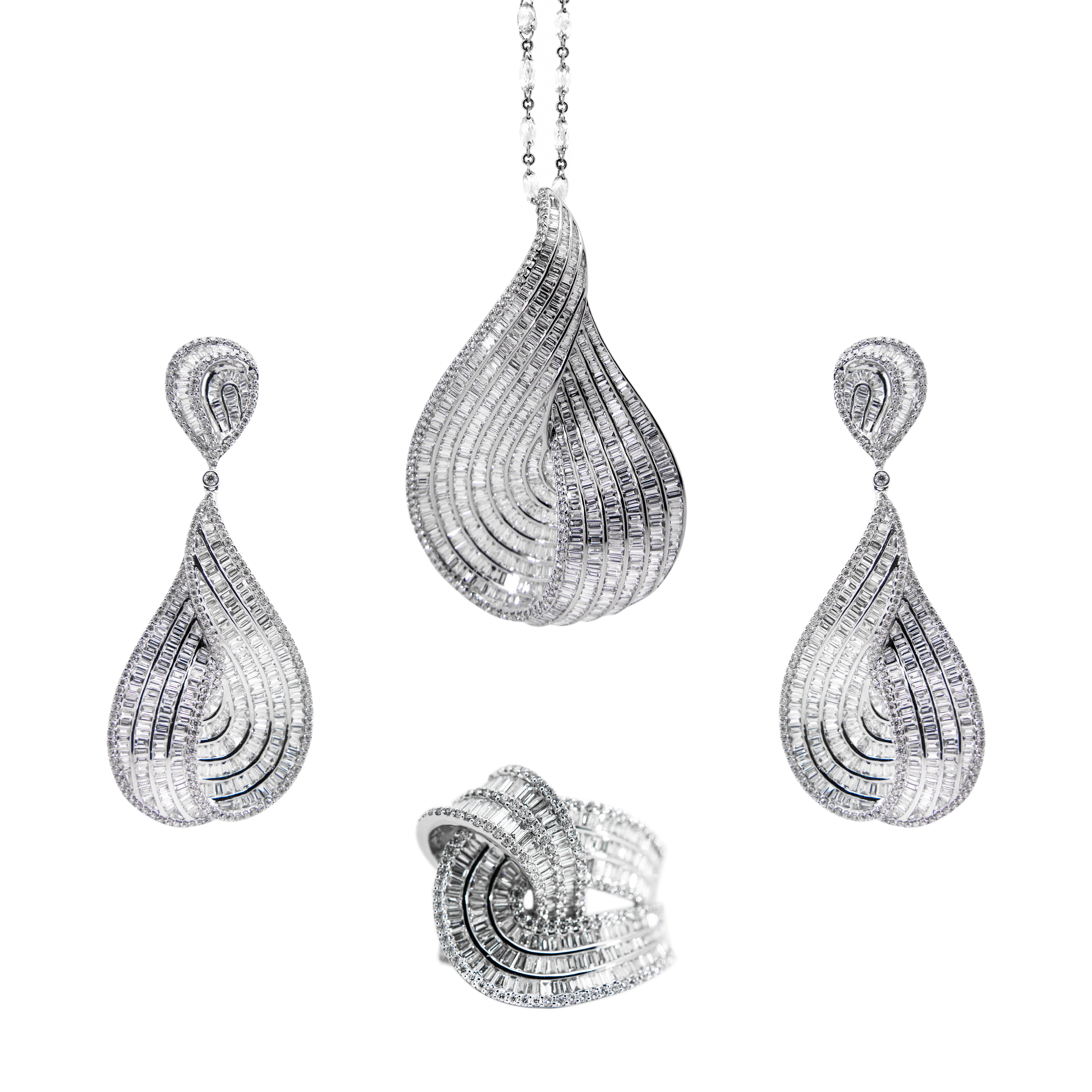 Pendant Earrings and Ring Jewellery White Gold Set with Diamonds