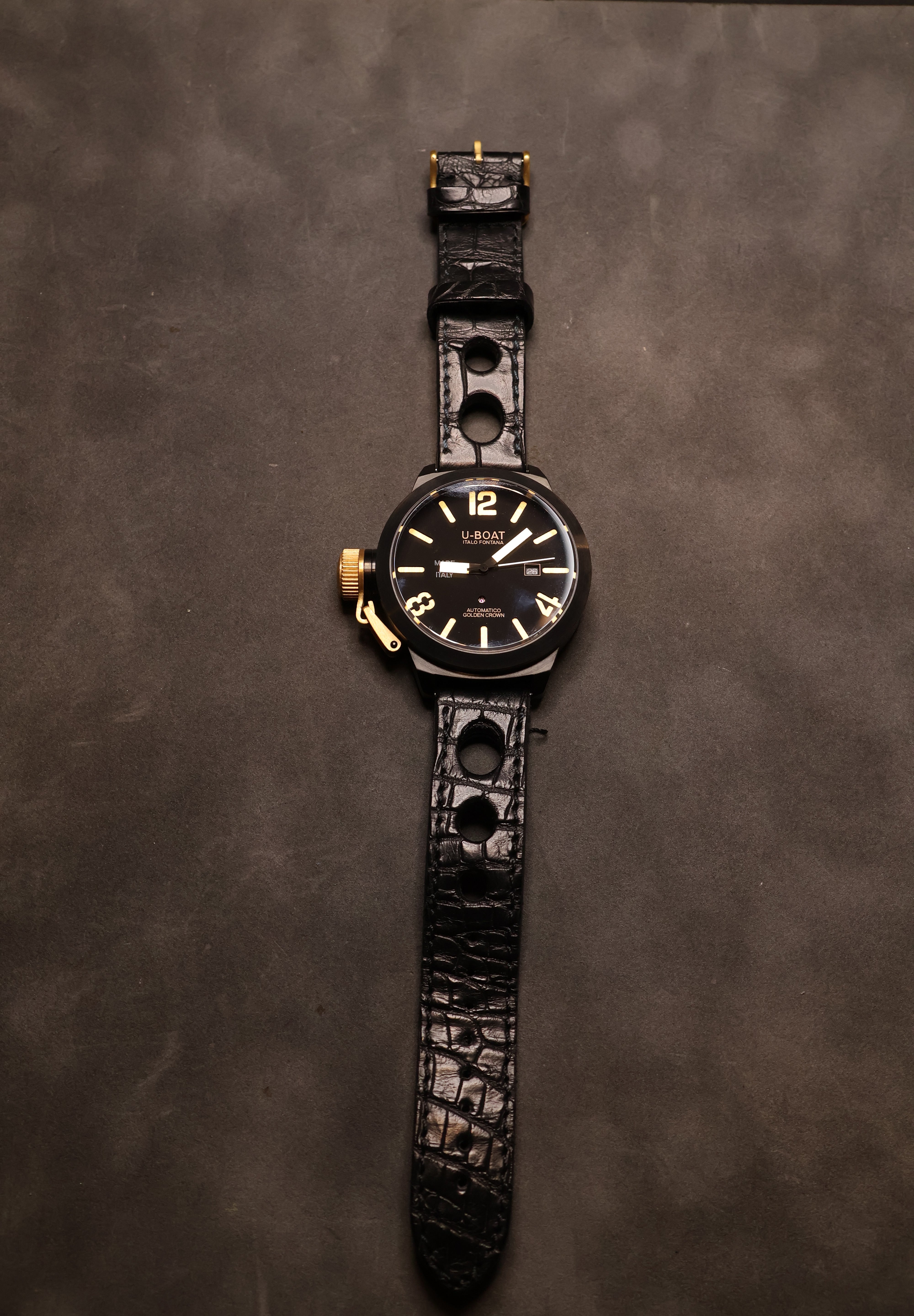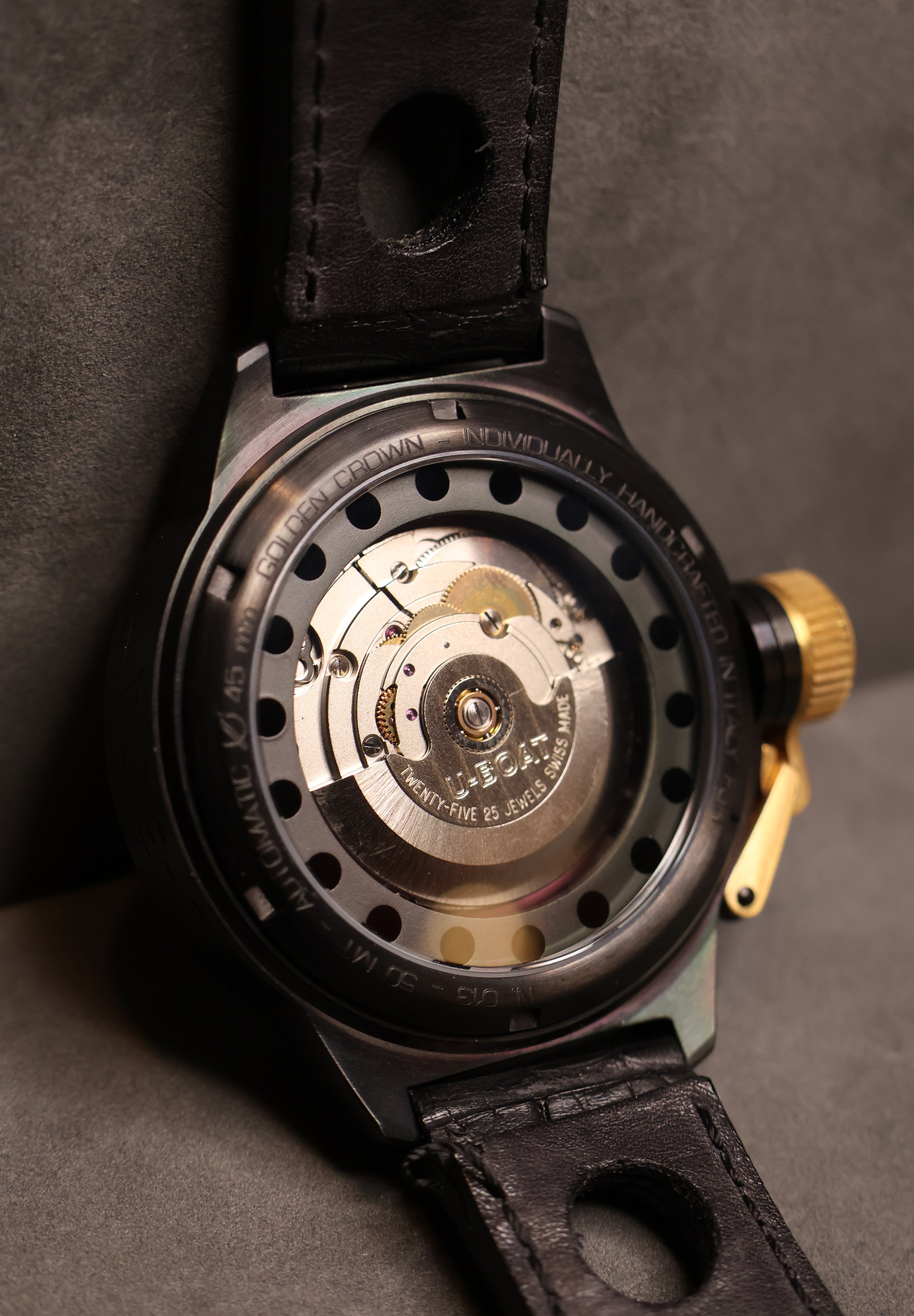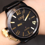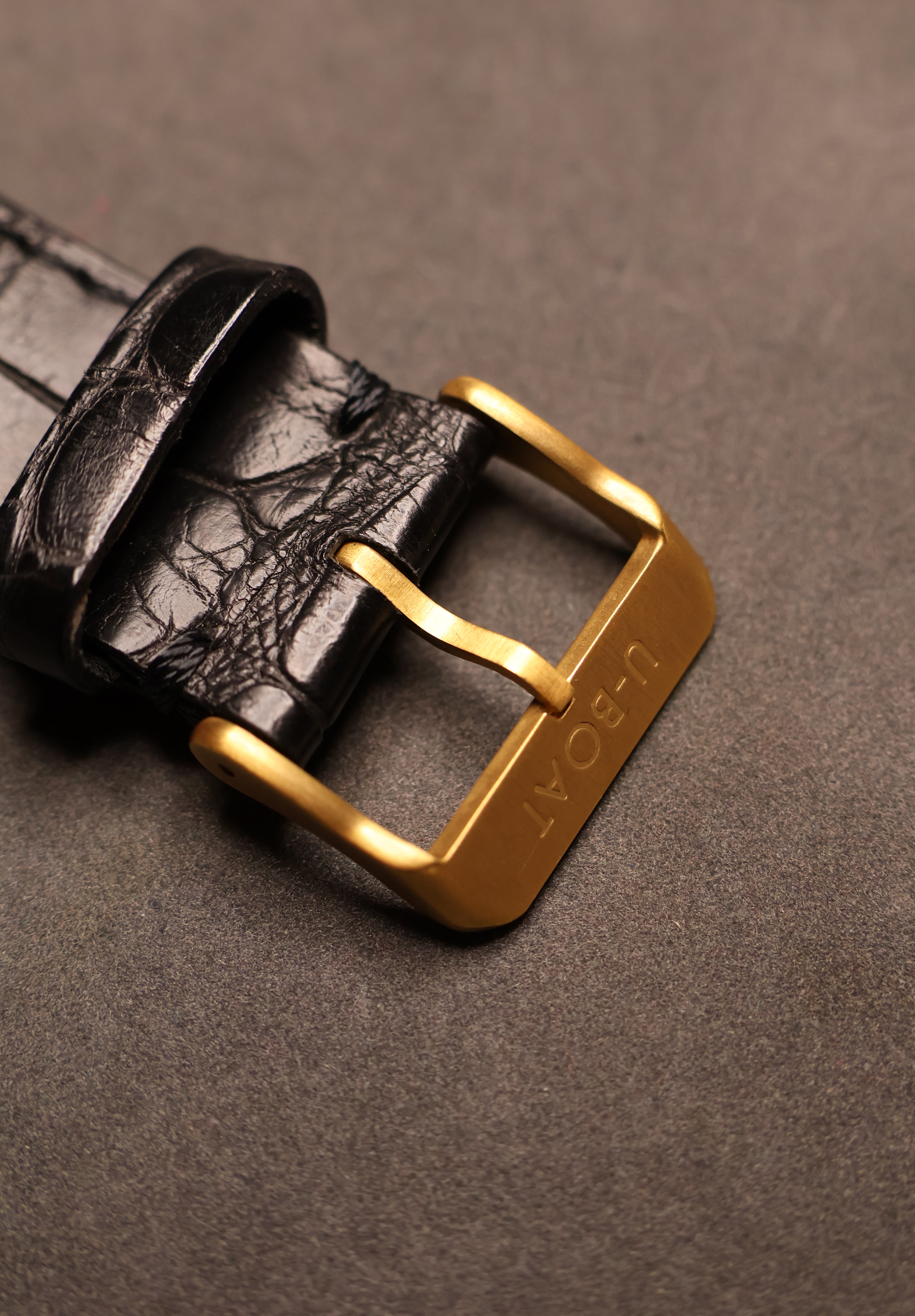 Dial Numbers: Large Arabic numerals (12, 3, and 9), golden accents