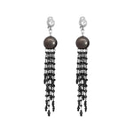 The dramatic tassel-style drop is composed of multiple strands of dark faceted beads, offering fluid movement and a bold, modern aesthetic. This interplay of light and shadow makes the earrings ideal for evening wear, gala events, or statement styling.