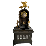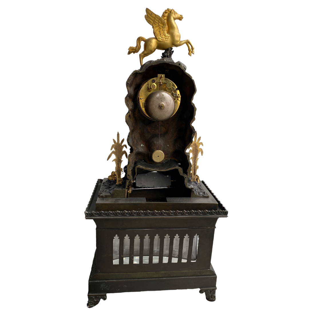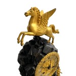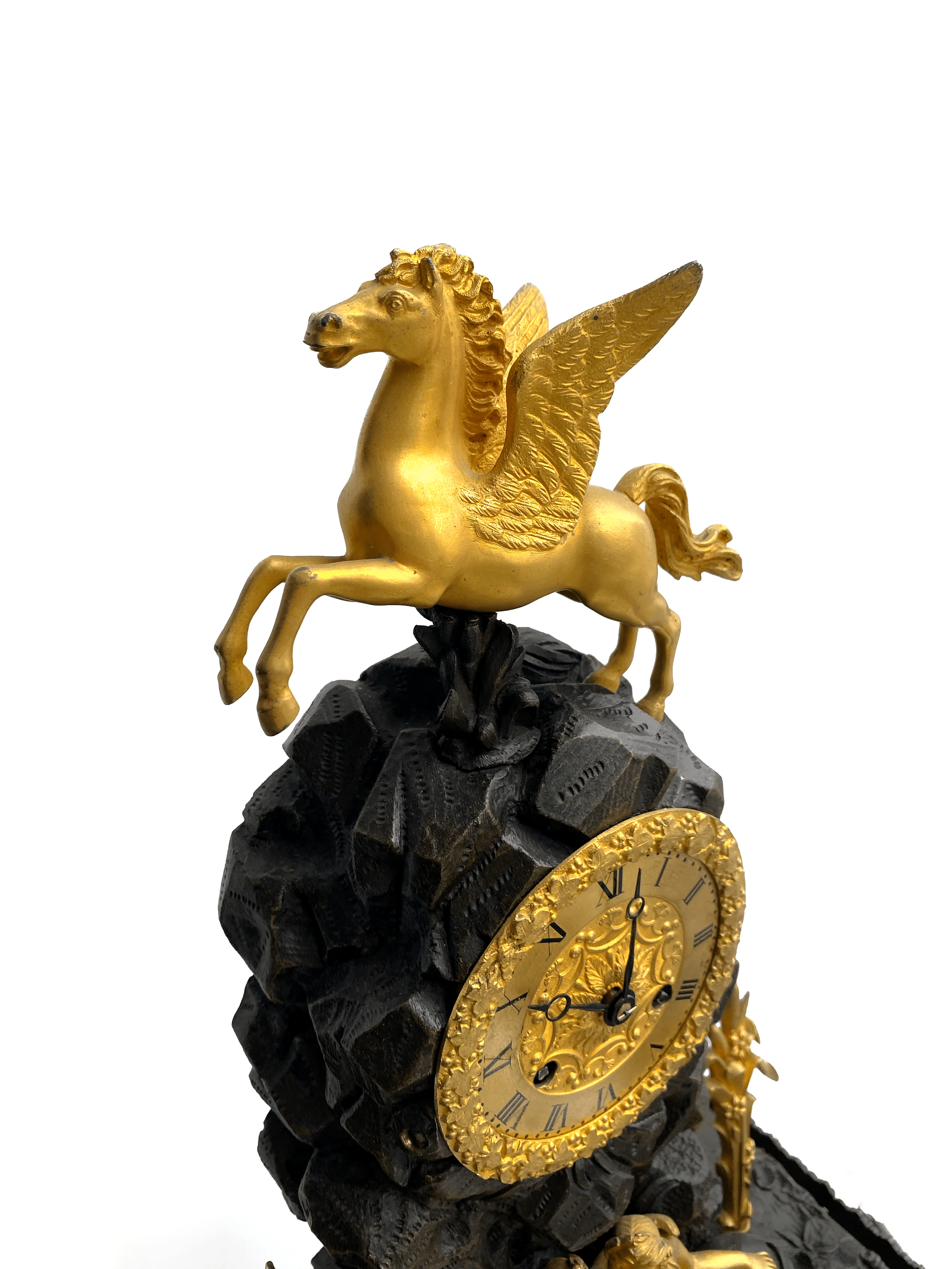 - Часы увенчаны фигурой Пегаса из позолоченной бронзы, мифического крылатого коня из греческой мифологии, символизирующего поэтическое вдохновение и величие.